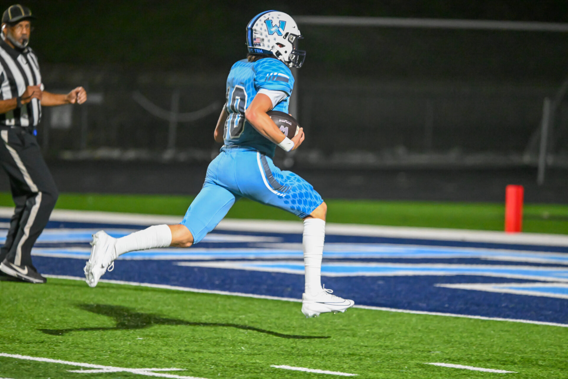 Just two weeks after Watauga running back Everett Gryder electrified the packed grandstands at Jack Groce Stadium with a 66-yard TD run on the first play from scrimmage against Maiden, he ripped off a 62-yard romp on Sept. 20 in front of an even bigger Homecoming crowd against North Davidson. Everett was forced out of bounds at the Black Knights’ 8-yard line but finished the job one play later, slicing through the middle of the line to paydirt.