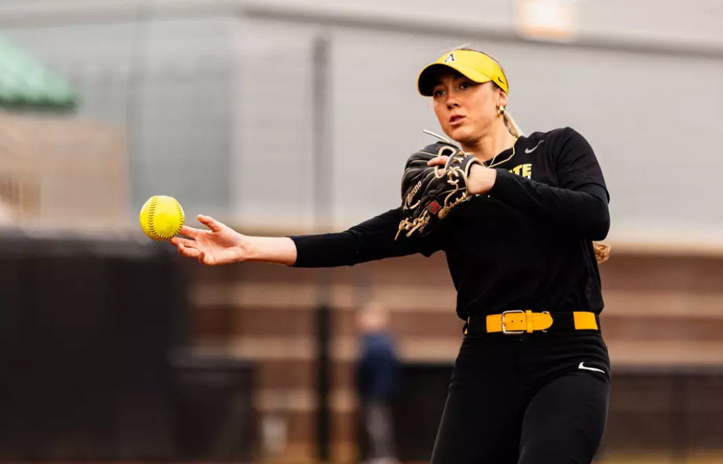 App State worked around a lead-off N.C. Central single in the fourth inning to keep its lead, before scoring two more runs in the fifth to take a 9-0 advantage. Needing just three more outs to finish what she started, Moshos used just six pitches to get out of the fifth, which secured App State’s 12th win of the season.