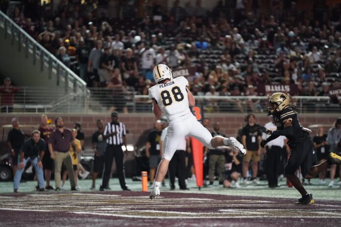 But it is also hard to take anything away from Texas State QB Layne Hatcher (26-36 passing for 281 yards, 2 TDs, and 1 INT), running back Lincoln Pare (20 carries for 64 yards and a TD while adding 2 pass receptions for 29 yards), and 10 Bobcat receivers who caught passes from Hatcher, led by Ashtyn Hawkins (6 catches, 105 yards, 1 TD) and Charles Brown (5 catches, 44 yards, 1 TD).