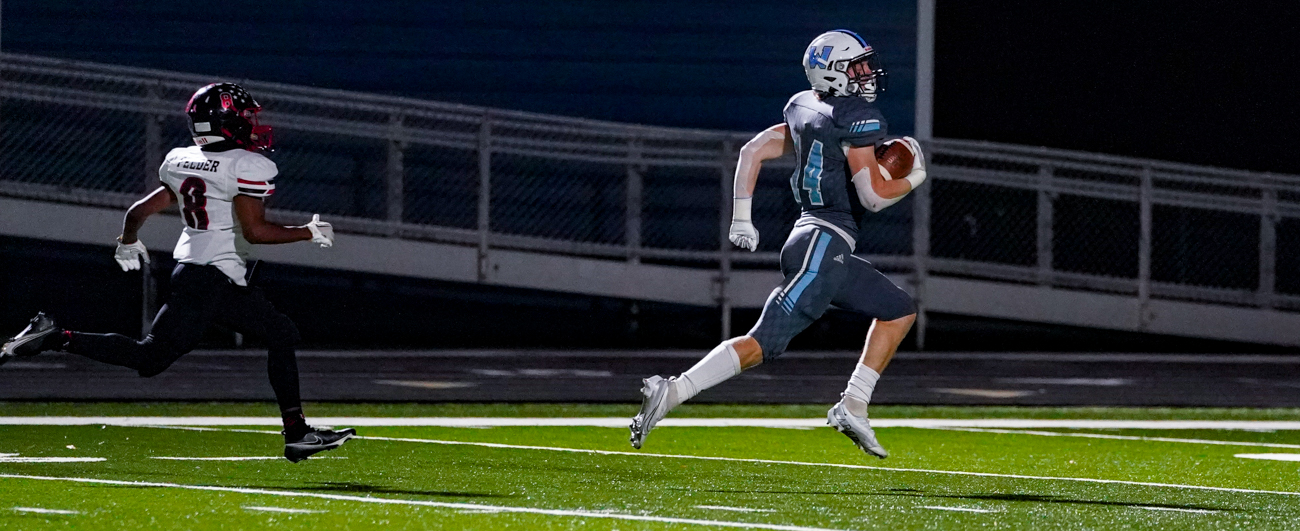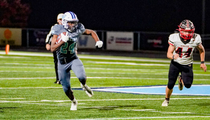 Noteworthy on the night was the unencumbered return of wingback Trey Thompson, who suffered an early season upper body injury. On a counter play off right tackle that he described later as his favorite play, Thompson shot through a gap opened up by the offensive line at the Panthers’ 22, broke into the second level and no one could catch him before crossing the goal line without a Hibriten player within 15 yards of him.