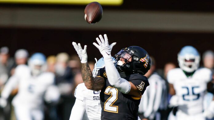 The Mountaineer defense set the tone early, too, with a three-and-out defensive effort on Old Dominion’s opening drive. Faced with a 90-yard field upon taking possession, the App State offense wasted little time in shrugging off the challenge of bad field position when quarterback Chase Brice hit wide receiver Kaedin Robinson for a 57-yard aerial on the first play from scrimmage. Although good rushes by Nate Noel and Daetrich Harrington got the ball into the red zone, Harrington fumbled just before going out of bounds at the Monarch 6-yard line. It was recovered by lineman Cooper Hodges at the 9-yard line to keep possession with the Mountaineers, but the drive stalled and they had to settle for a 27-yard field goal.