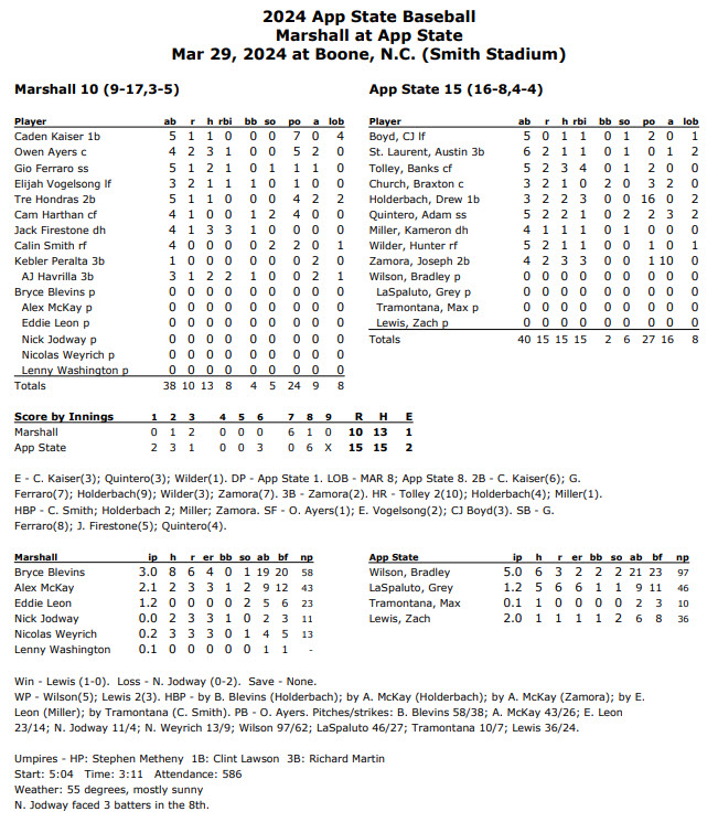 App State hosts Marshall in the third game of the weekend series on Saturday, March 30, with first pitch at 1 p.m.