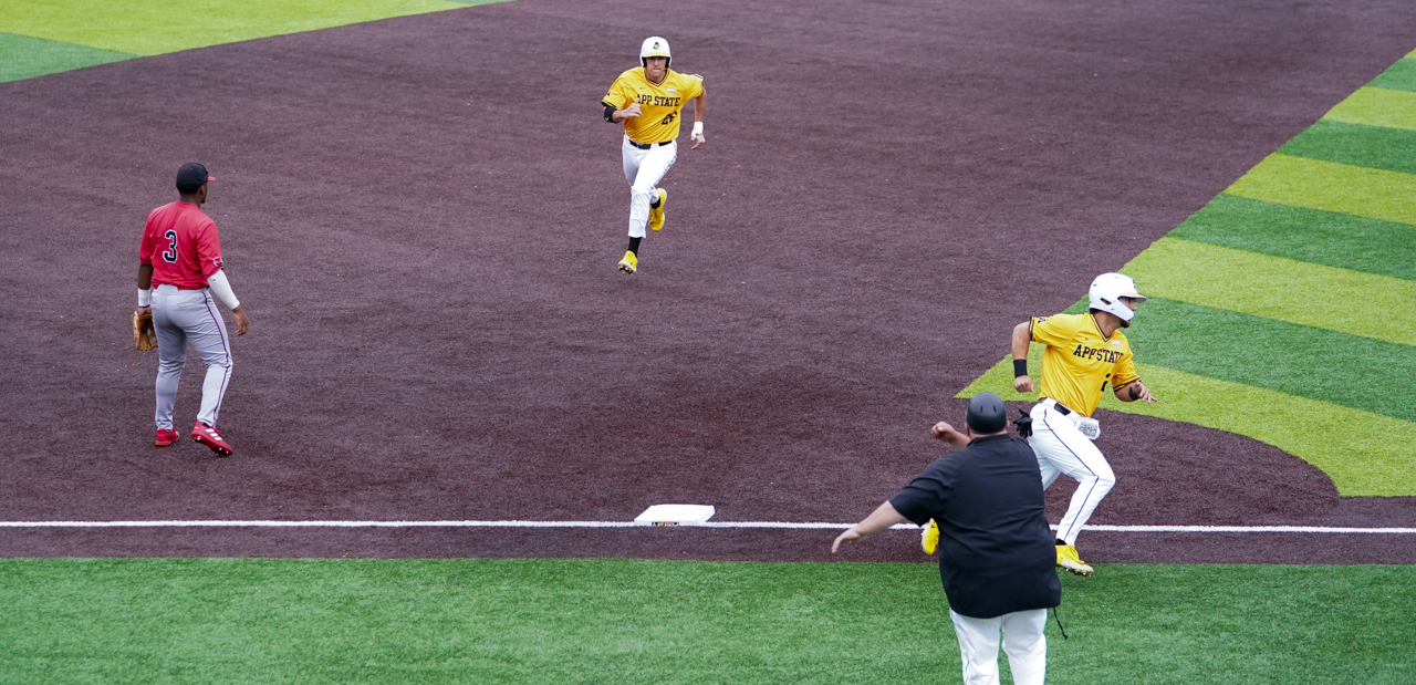 The next batter, right fielder Dylan Rogers, didn’t waste any time by ripping a double to the gap in right center. The ball made it all the way to the fence before being retrieved by a Red Wolves outfielder. The hit tallied two more runs for the Mountaineers, with Reed and Drumheller crossing the plate easily.