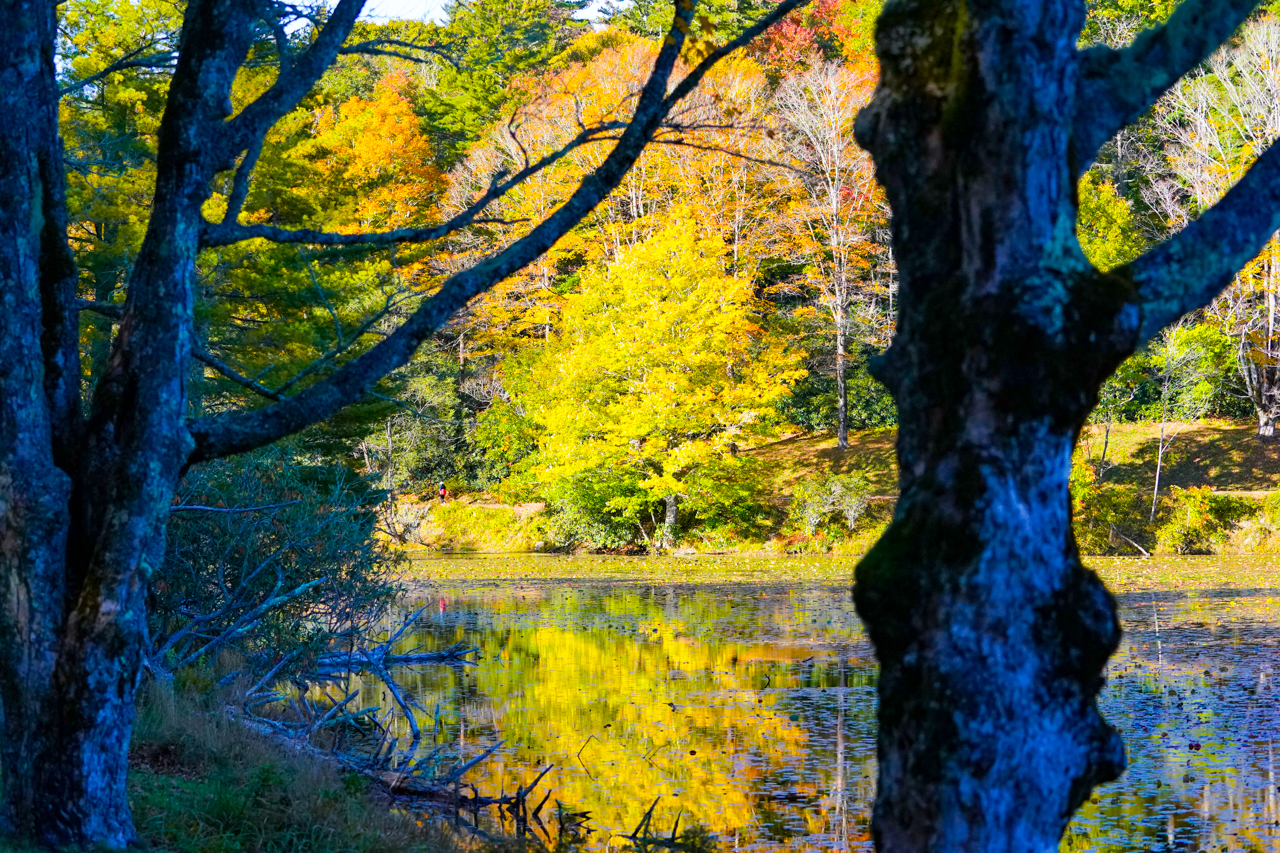 By David Rogers. BLOWING ROCK, N.C. — It is that perfect time of year for fall colors and a Sunday evening stroll around Bass Lake in Blowing Rock. Dark limbs and tree trunks provided stark contrasts to the vivid gold reaching out over blue waters. Dark, ghostly reflections in still pools harken the days before Halloween. A shadowed trail with glimpse of color overhead, brightening the way…