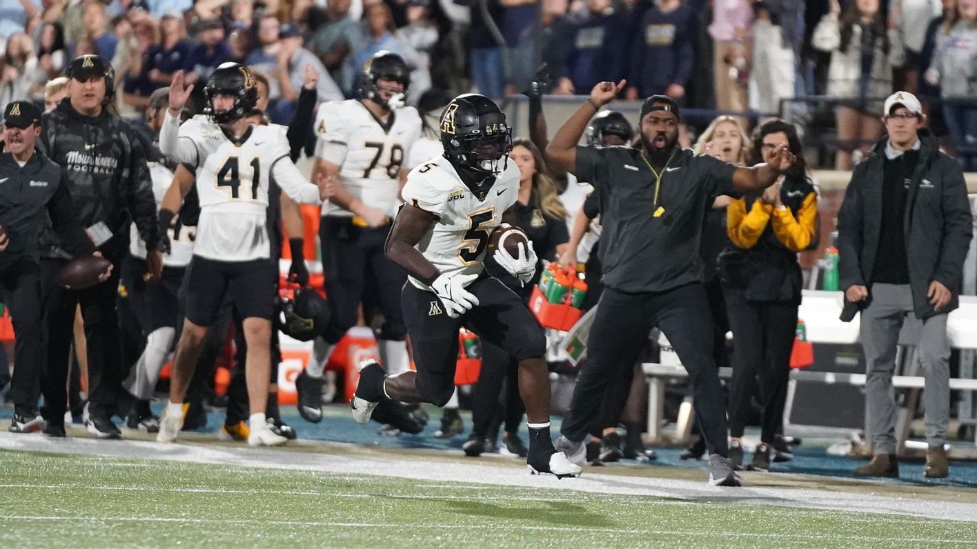 App State’s Nate Noel, Ahmani Marshall, and Daetrich Harrington did their part in racking up rushing yards and TDs. In taking advantage of the Mountaineers’ outside zone blocking scheme, Noel ran for 171 yards and three TDs, Marshall for 91 yards and a TD, and Harrington 74 yards and a TD.
