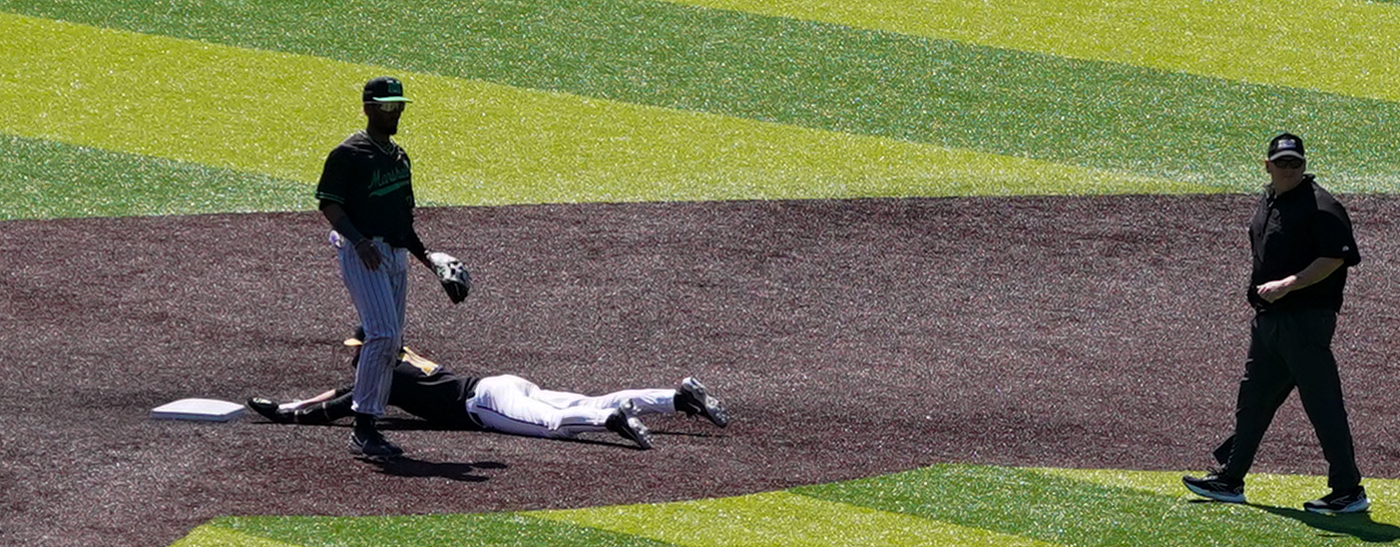 And it started in the top of the first inning with The Thundering Herd at bat and App State’s righthanded sophomore pitcher, Jackson Steensma, on the mound. The Byron Center, Mich., product was “feeling it” on the day, delivering a three up-three down performance in the top of the first, all strikeouts.