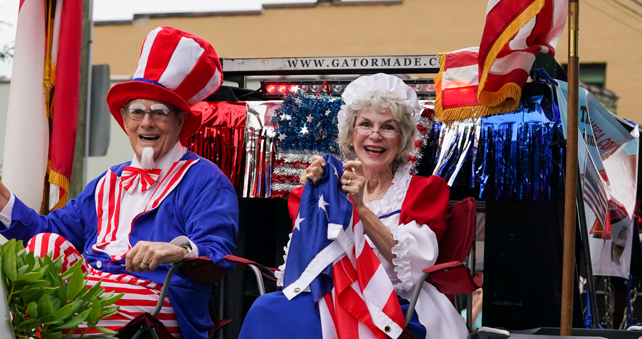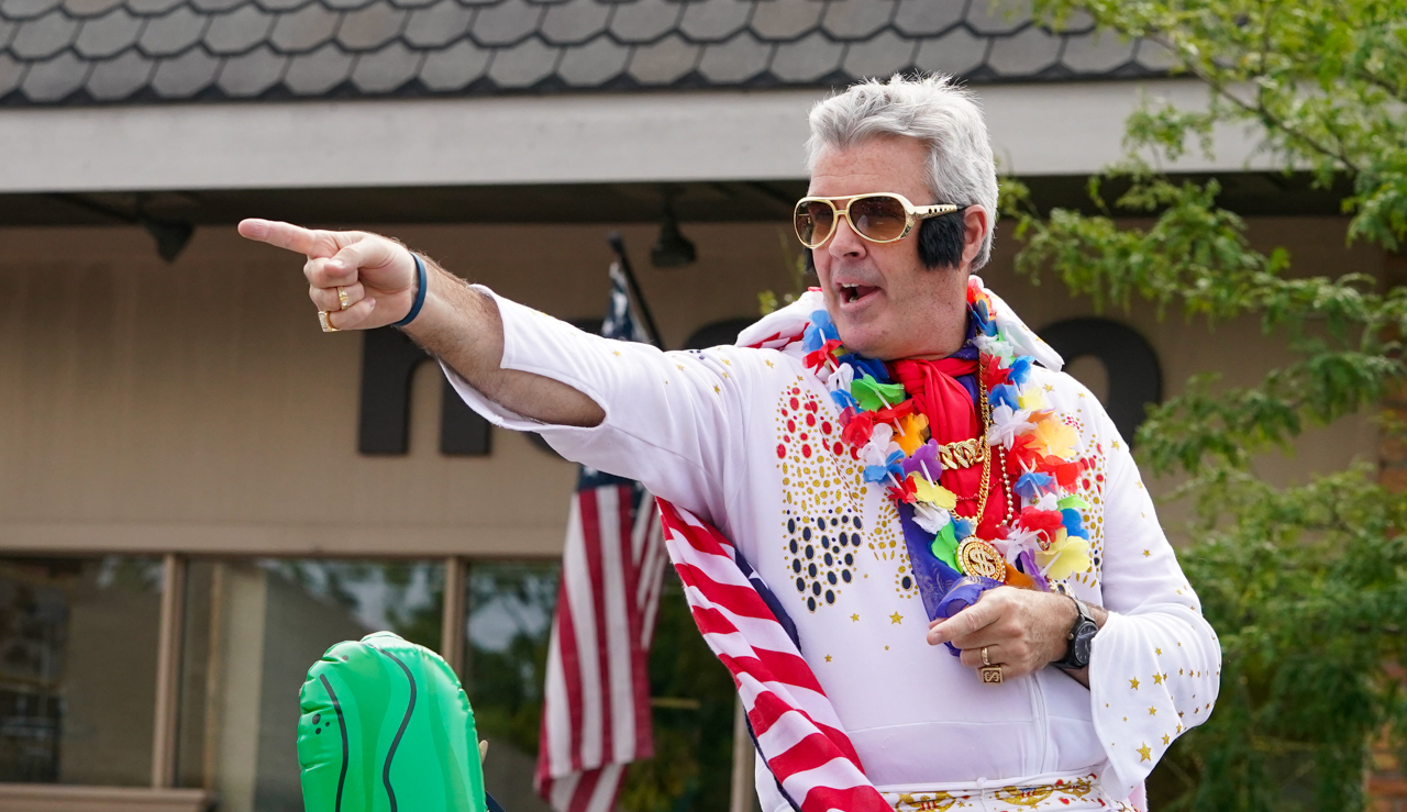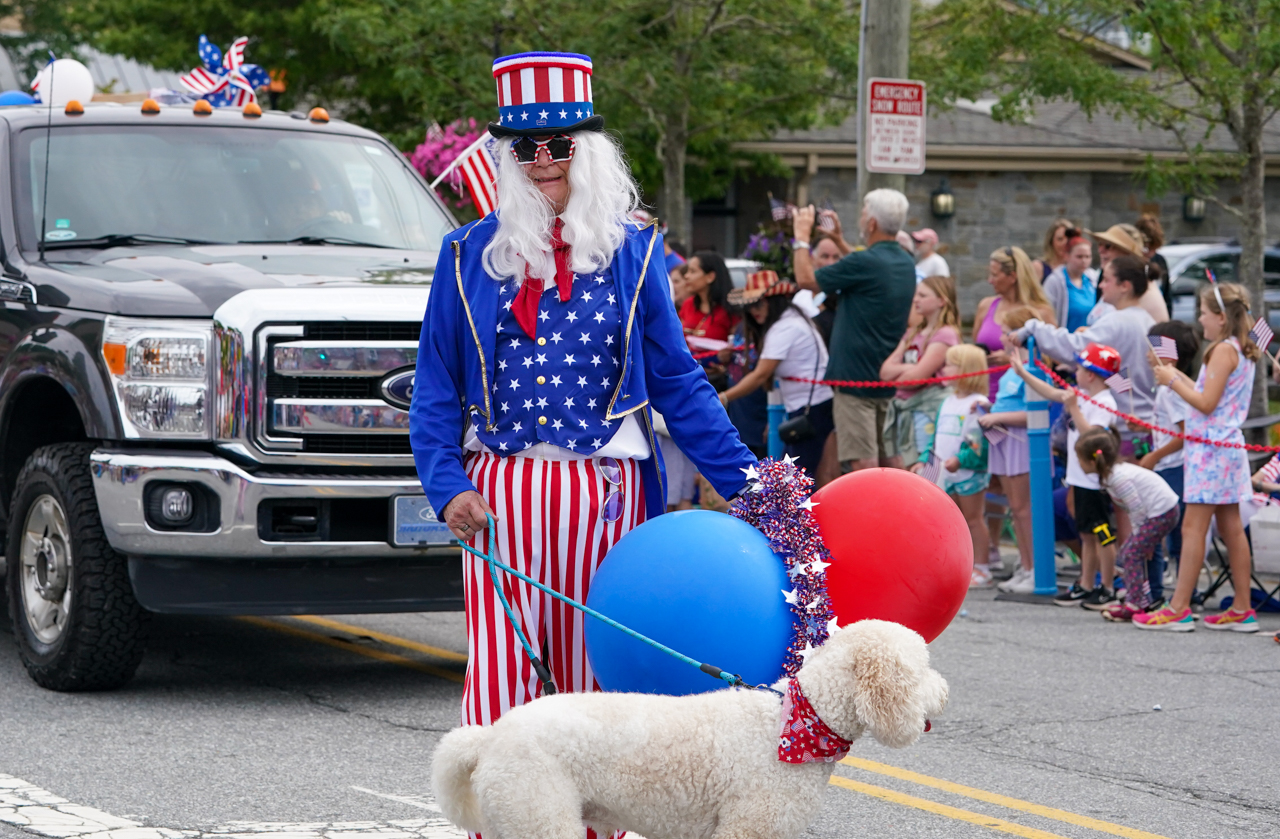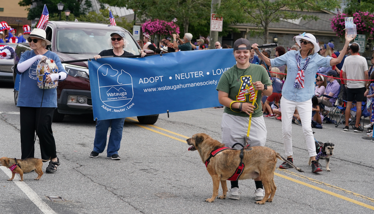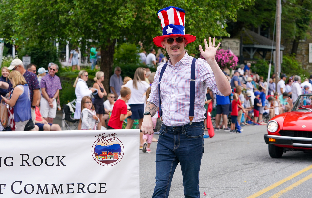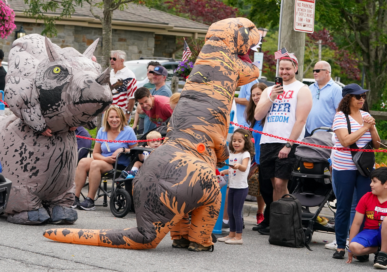 By David Rogers. BLOWING ROCK, N.C. — An estimated five thousand people came out of the downtown woodwork to watch Blowing Rock go to the dogs, dinosaurs, sharks and Elvis impersonators on July 1. Oh, and there were a myriad number of Uncle Sam and Betsy Ross lookalikes. Of course, it was the annual Blowing Rock 4th of July Parade down Main Street, with lots of fun had by all.