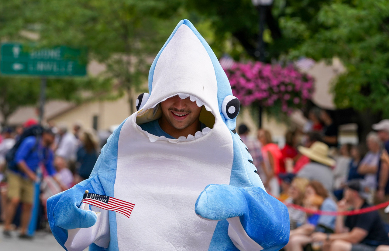 Driver Bob Hartnett was navigating down Main Street in the 4th of July Parade in a 40-yearold Chrysler on July 1.Yikes! Help this guy out. He has been swallowed by a shark!This crew is properly outfitted for an outdoor adventure!There aren’t very many World War II veterans still alive, so H.C. Moretz of the High Country is special, indeed!