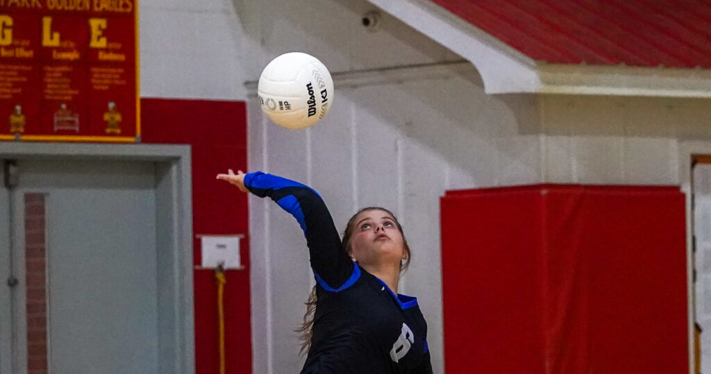 It was the second game of the tri-match format, played after Bethel had lost, 2-0 (25-3, 25-12) to the host Golden Eagles. In the first set between Bethel and the Rockets, the west siders had Blowing Rock on the ropes with a 24-18 lead and just needing one point to win the set. But behind masterful serving by young Elouise Cascio, the Rockets went on a 7-0 run that put them ahead 25-24. Then Bethel stiffened, forcing the set into extended overtime before Blowing Rock prevailed, 32-30.