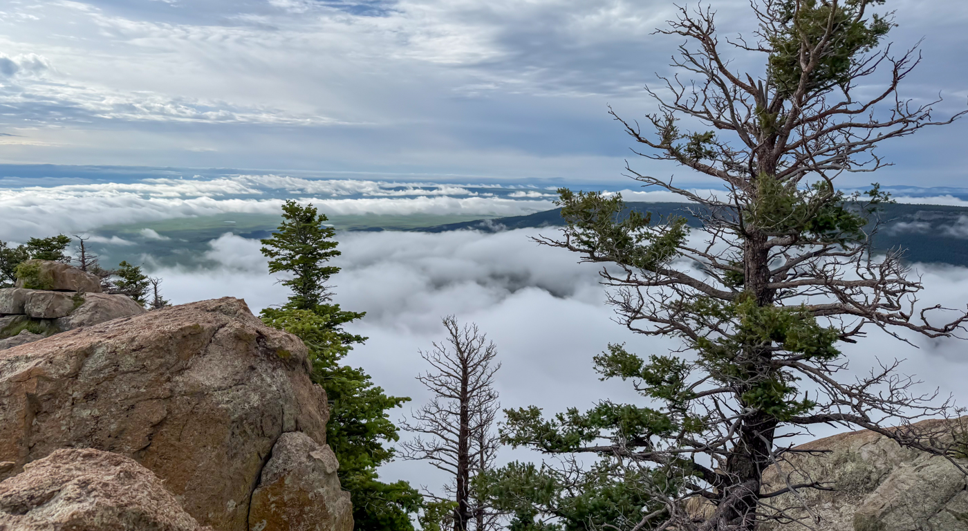 “On the south side, there was a really dense stand of trees. In a lightning storm, you don’t want to be near any trees,” said Blain. Conveniently, on the north side, there were giant boulders. It took us about 30 seconds to leave our packs and go over and down the north side. We helped each other find hiding spots among the boulders and that is where we stayed for about 30 minutes.”