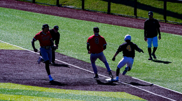 It appeared that the Bulldogs’ centerfielder got part of his glove on the long fly ball, but unable to haul it in, the white orb rolled all the way to the fence, allowing shortstop Alex Aguila to score from third and third baseman Andrew Terrell to race home from second base.