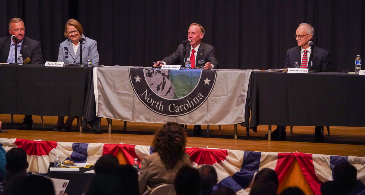 With local attorney Chelsea Garrett and financial advisor Billy Chick again serving as moderators, the four candidates for the two open board of commissioners seats and Charlie Sellers, running unopposed for Mayor, fielded questions ranging from paid parking, underground utilities, property taxes, town code, and more. At the outset, Chick noted that this was the 16th year that the Chamber’s “Leadership Challenge” alumni had hosted and produced a Candidates Forum.