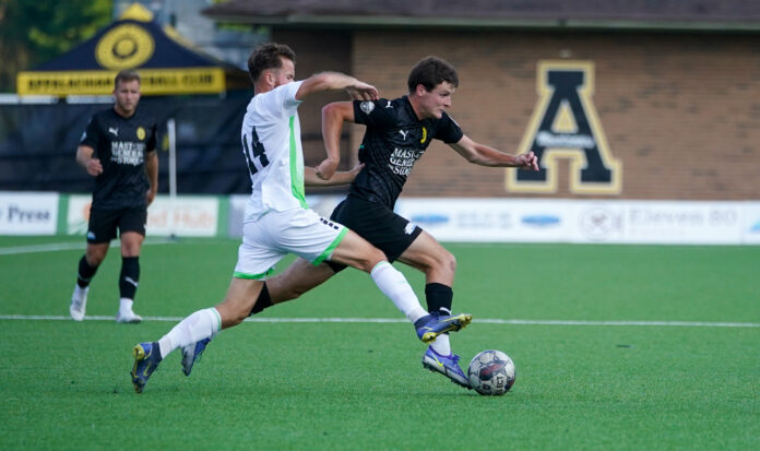 Appalachian forward Jeremiah Luoma brought the 1,000-plus crowd to its feet in the 23rd minute with an angling break from the left side, drawing the Hops goalkeeper out before punching the ball past him, skipping along the turf and into the net to put the home side up 1-0.