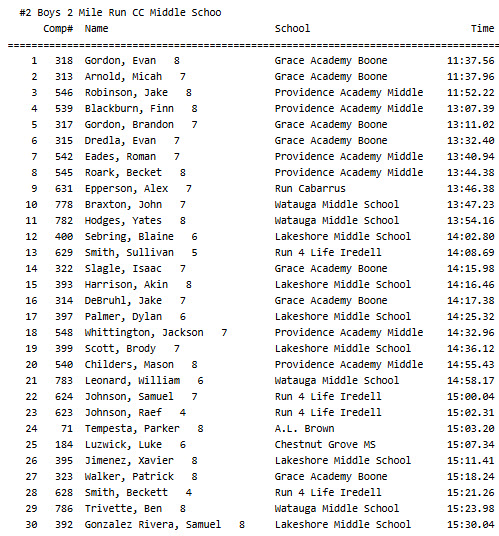 Middle School Boys Top 30