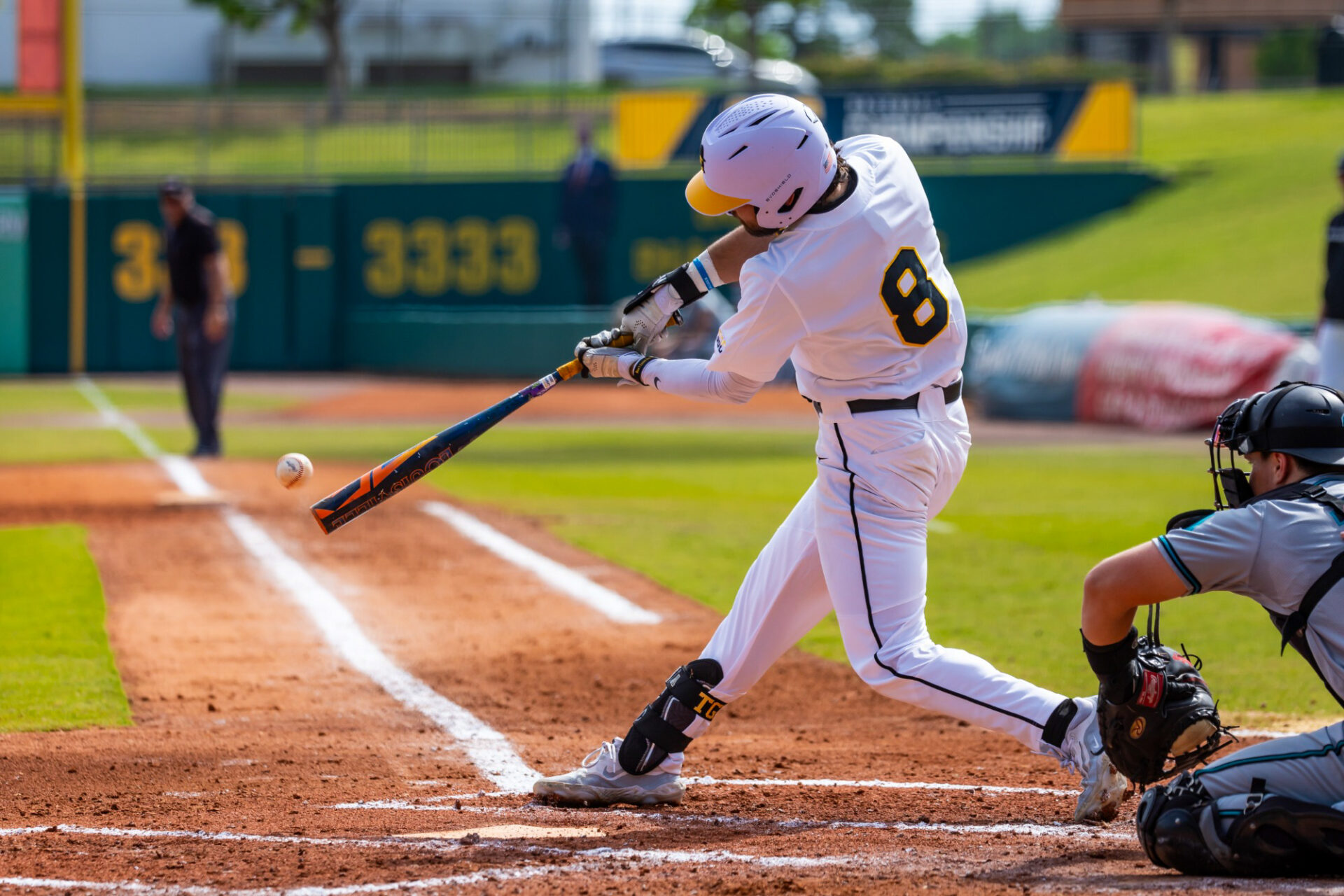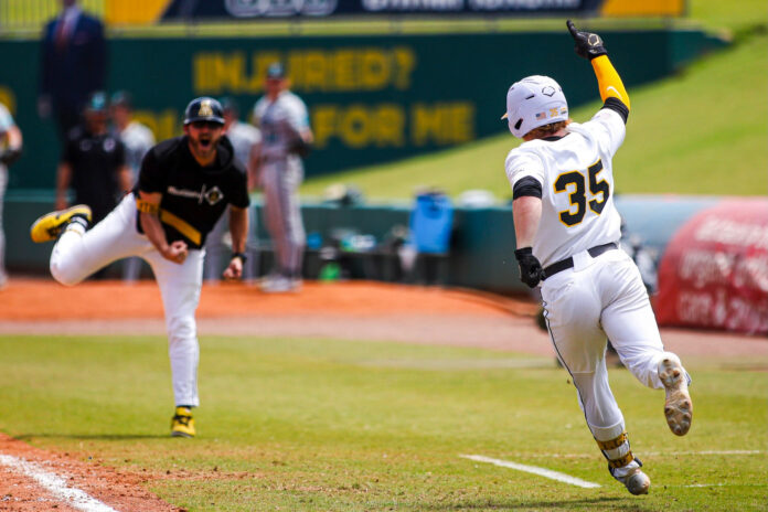 With the score tied at 3-3 in the bottom of the seventh, Hunter Wilder hit a ball back to the mound and sprinted down the first base line forcing an errant throw, reaching safely to begin the inning. Two batters later, Austin St. Laurent was hit by a pitch, setting up Holderbach who delivered a missile over the left field fence to push the Mountaineers in front, 6-3. The home run was Holdebach’s ninth of the season and it gave the Mountaineers their largest lead of the game.