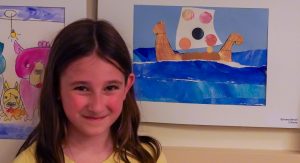 A student in teacher Brittany Norris’ second grade class, Sylvana Benoit not only brought the Viking ship in her imagination to life, but added white-crested waves in her ocean. The head of her Viking battleship? “It’s a cat,” she explained. And a fierce feline it is, to be sure!