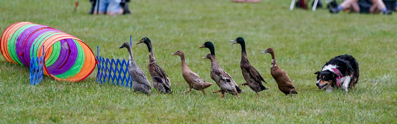 The sheep herding demonstration morphed into a goose-herding event, just to show off how good the dogs are in responding to the same vocal calls and whistles.
