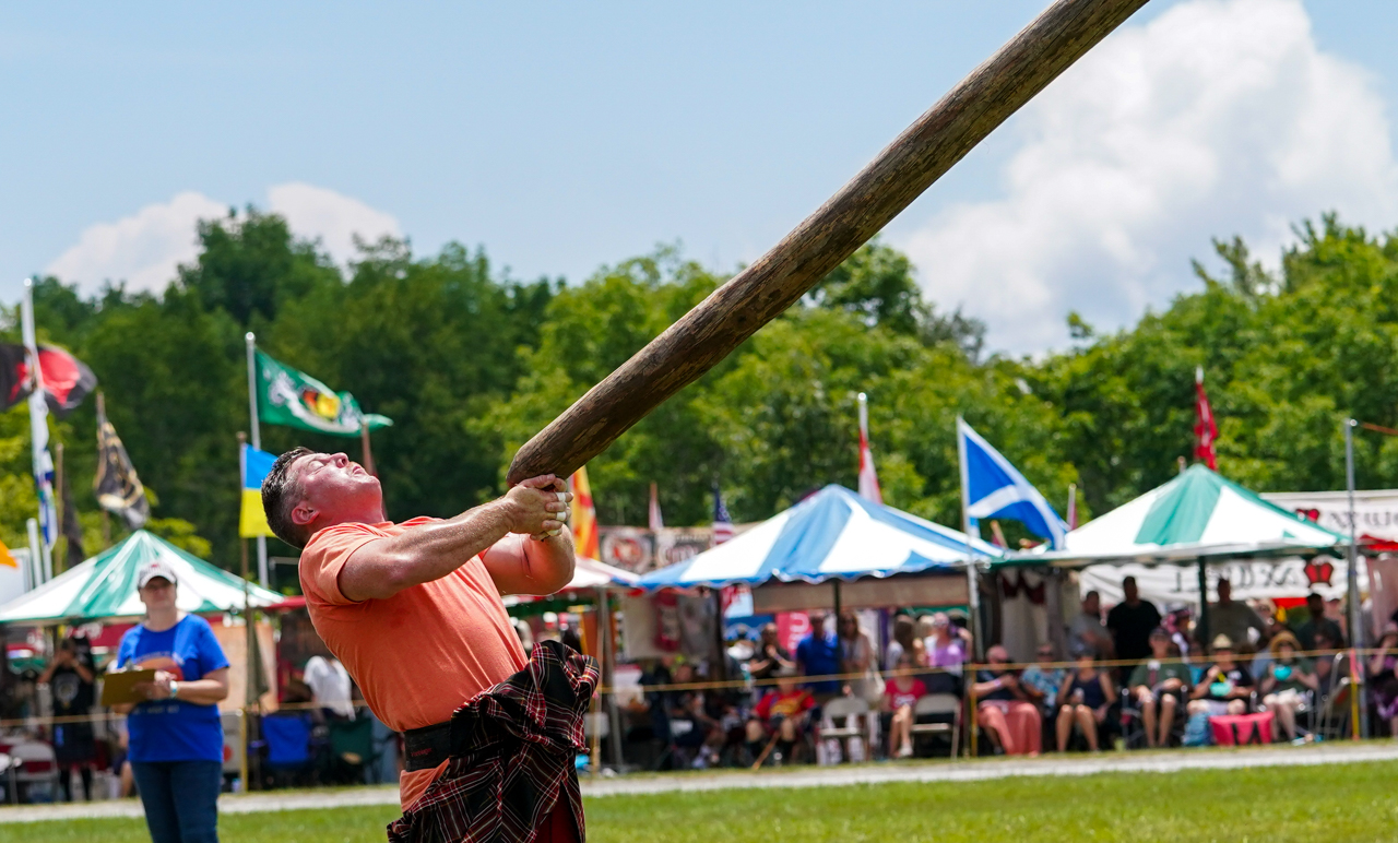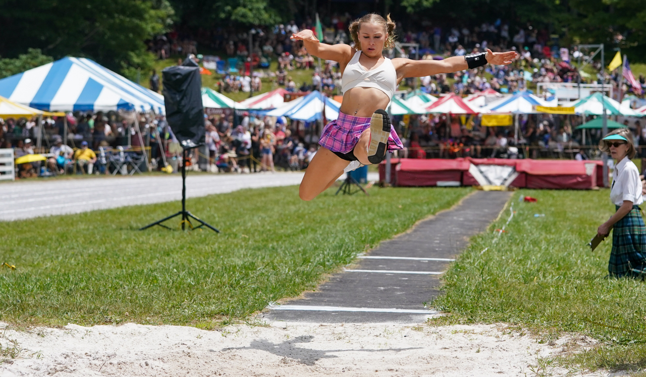 Saturday, July 8, was the athletic centerpiece of the Games. Caber toss by professionals, women’s weight throw, and a variety of track and field events with dozens of competitors were just some of the feature: high jump, triple jump, pole vault, 440-yard dash, 100-yard dash, the mile, 880-yard dash and more.