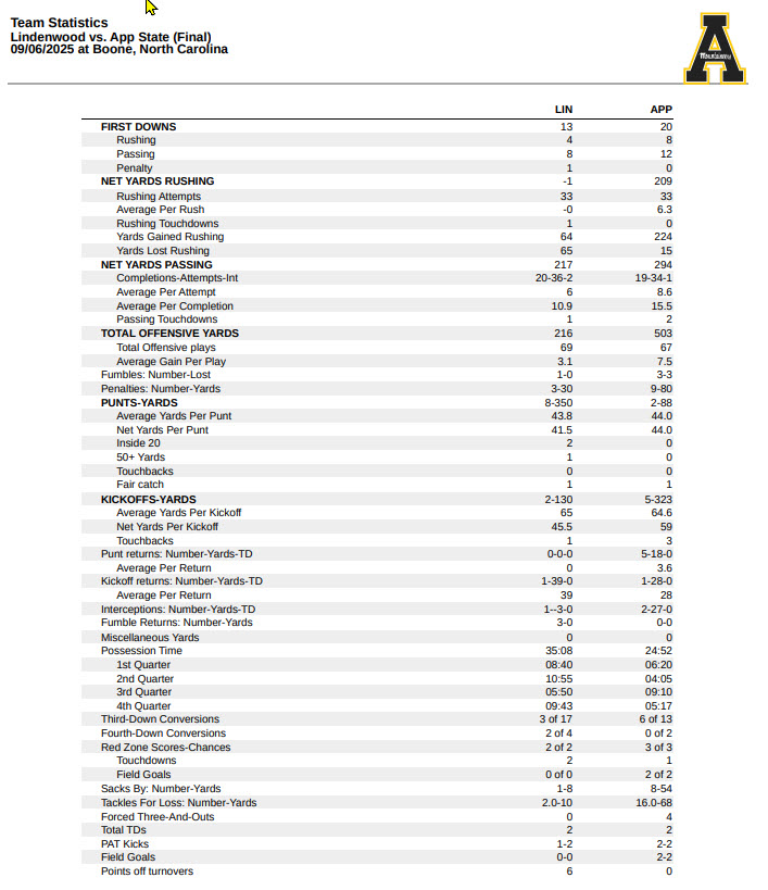 Those Mountaineer exploits aptly describe the Lindenwood Lions on this day, against arguably the most talented App State team in years thanks to the transfer portal and an NFL-pedigreed coaching staff.