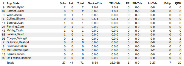 Often put in difficult situations, the Mountaineer defense won the day and turned back the Glantz-led Lindenwood offense for most of the game, even forcing a pair of Lion turnovers. Altogether, the Mountaineer defense rolled up 16 tackles for loss, 7 pass breakups, 10 QB hurries, and 8 QB sacks to complement a forced fumble and two pass interceptions.