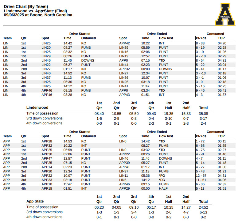 In the mid-2000s and even the early days of FBS, App State was the 2025 edition of Lindenwood football: wannabe giant killers, the game underdogs who played bigger than their reality and reputation. They didn’t back down from Michigan in the Big House, in 2007. Fast forward to 2016 when they lost to Tennessee in overtime; to 2018, when they took Penn State to OT; to 2019, when the Mountaineers defeated both North Carolina and South Carolina on the road; to 2022, when the Boone boys trekked to College Station and upset Texas A&M; and to thrilling, one-score losses to North Carolina in 2022 and 2023.
