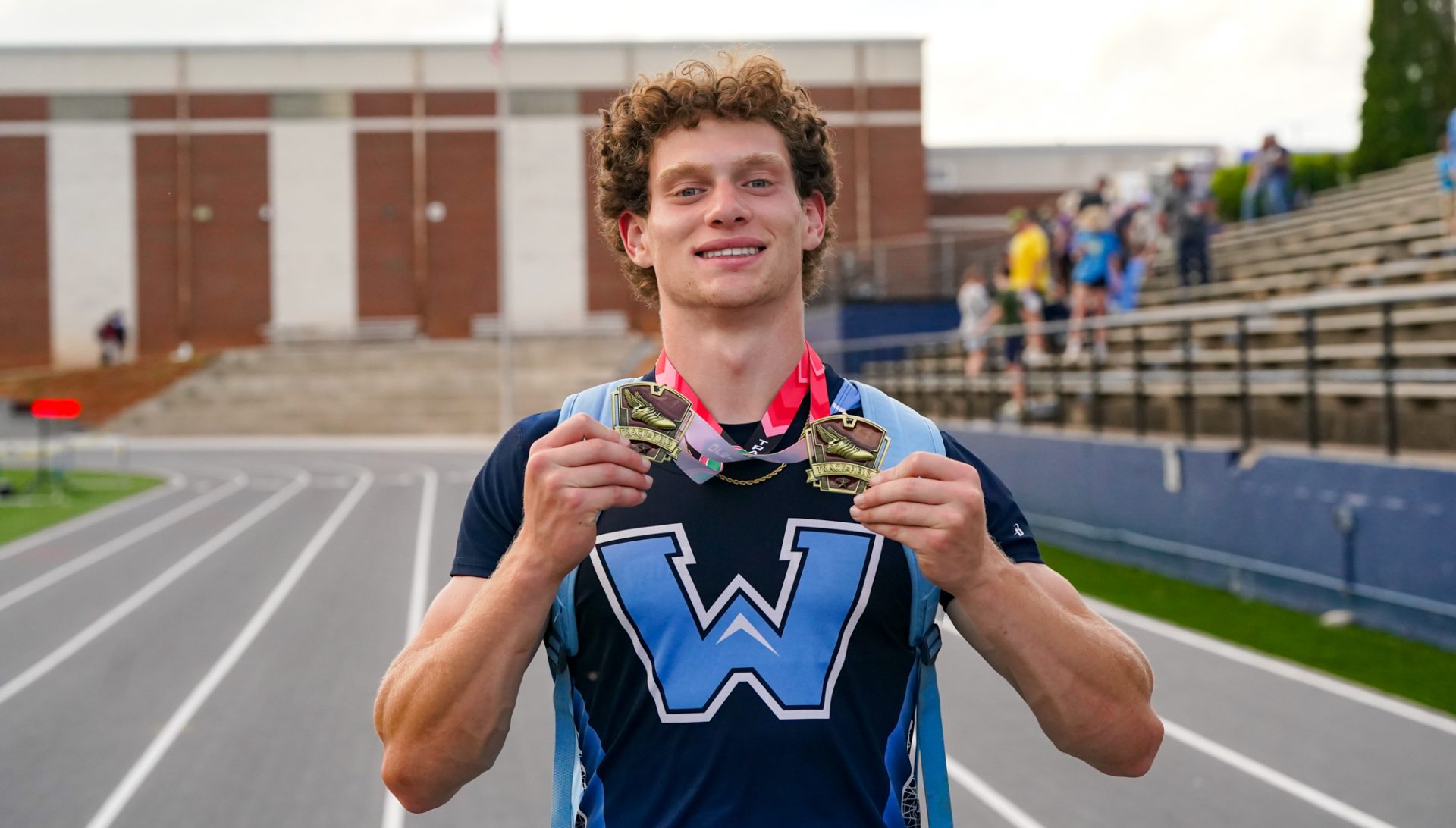Watauga’s entries in the Men’s 800 Meters took another 1-2-3 sweep to the podium, with Levi Anderson (No. 1, 2:04.72), Zeke Walker (No. 2, 2:05.40) and Brian Newmark (No. 3, 2:06.20) taking the honors.