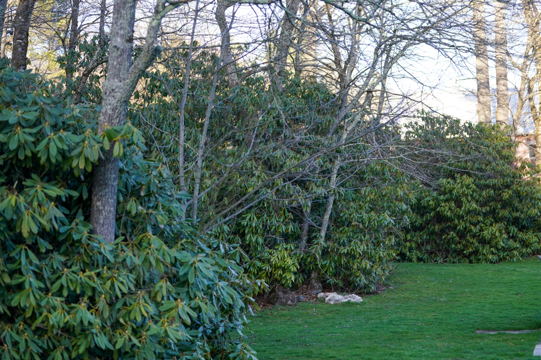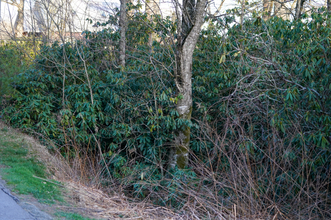 The project site is located between the Davant Field baseball diamond and Clark Street, currently overgrown with rhododendron and other bushes, as well as home to fallen dead trees, leaves and branches.