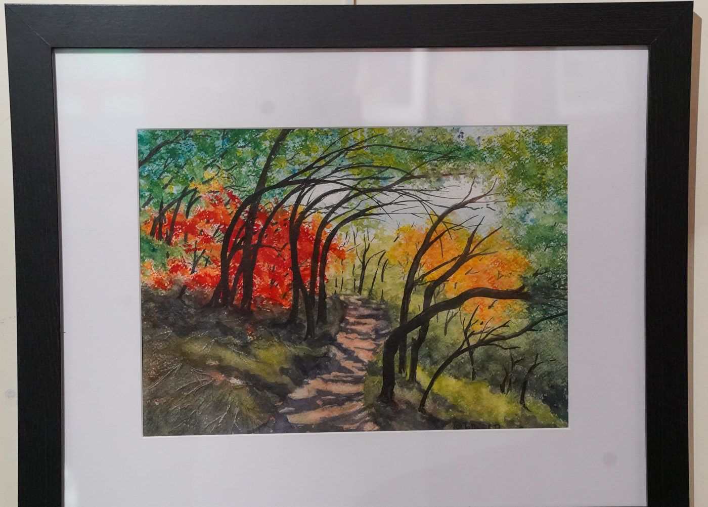 “I don’t give a thought to the money,” she said. “It’s the process that gets and keeps me going. When I started taking watercolor lessons, I abandoned painting with oils. Oil painting occurs in layers, dark to light and you can make changes all along the way and you mix your colors on the palette. With watercolors, I quickly realized that it had a mind of its own. As you add your layers, you let it do its thing. Water and pigment and the different colors that you are using… they mix together on the paper rather than on your palette. That inspires me because I like to interact with what is going on, on the paper.”