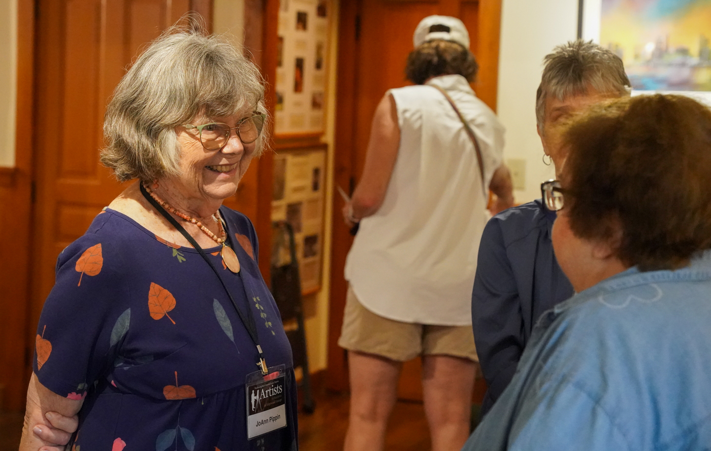 JoAnn Pippin, left, interacts with visitors to Edgewood Cottage on July 15 for the Artists in Residence series hosted by Blowing Rock Historical Society. Photographic image by David Rogers for Blowing Rock News