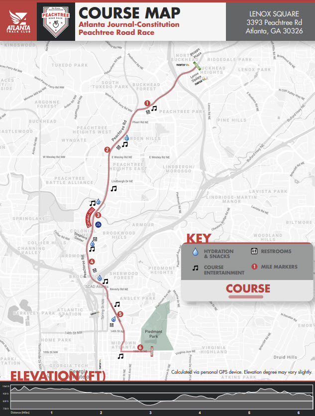 Starting in Buckhead and ending at Piedmont Park in downtown Atlanta, the historic Peachtree Road Race attracted roughly 50,000 runners for the 2023 edition, headlined by a strong international field of elite athletes.