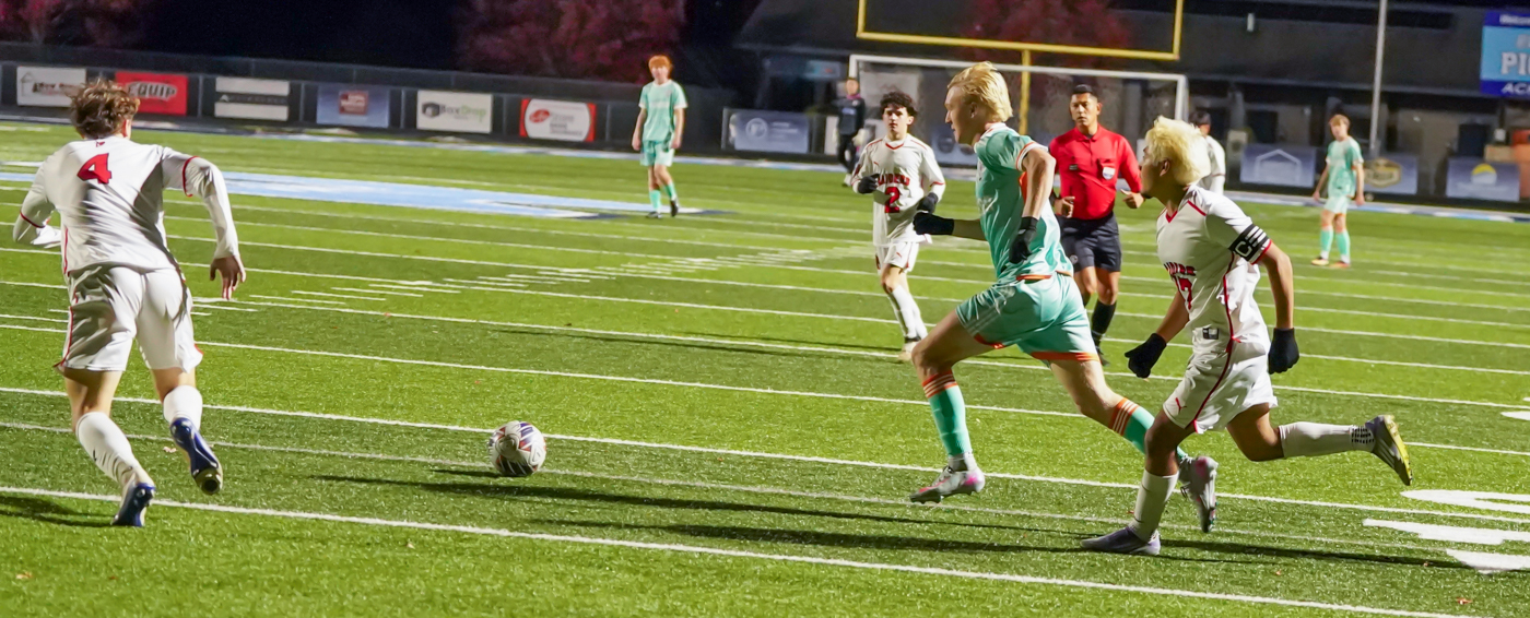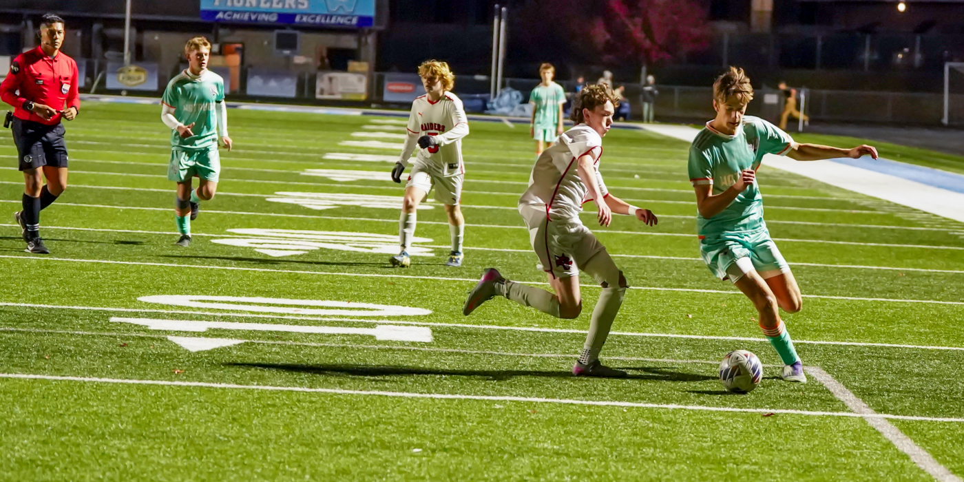 Later in the half, Luke Hamilton lofted the ball to upper right corner of the Raiders-defended goal, but the goalkeeper made a sensational save, deflecting the bullet over the crossbar. Not much later, Hamilton got another opportunity and this time sent the ball whizzing by the diving keeper for the last score and game clincher for the Pioneers.