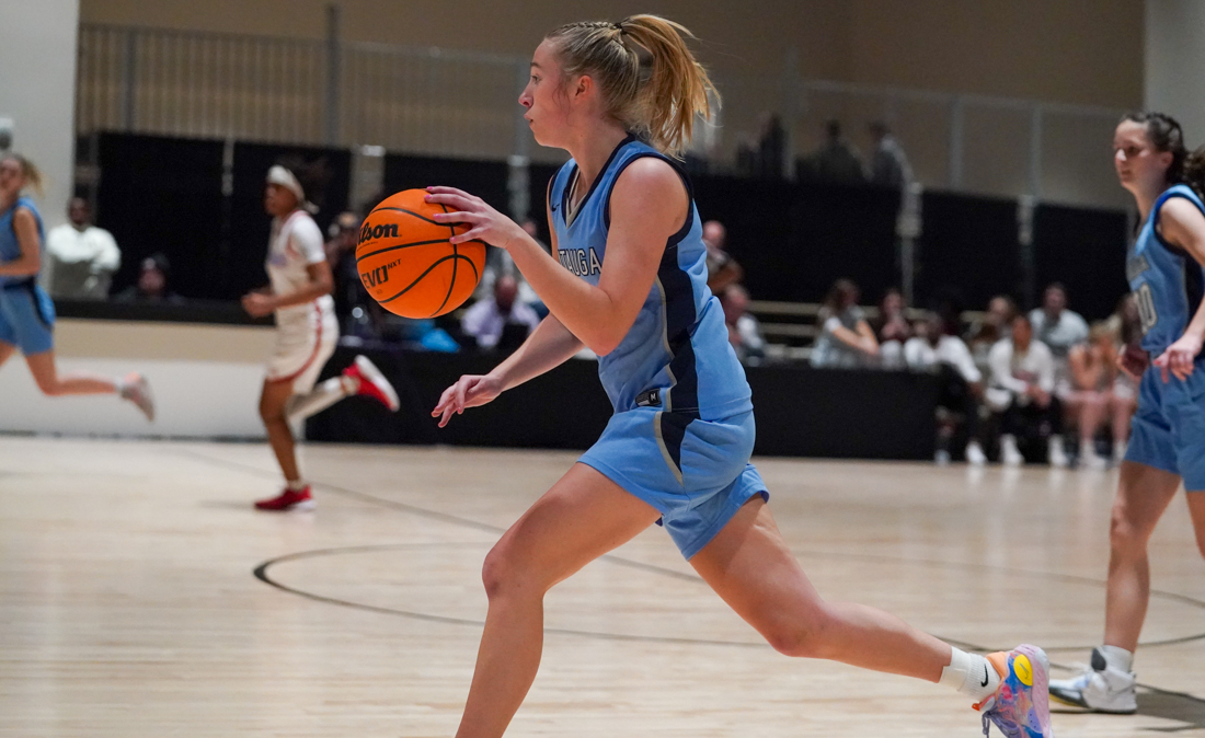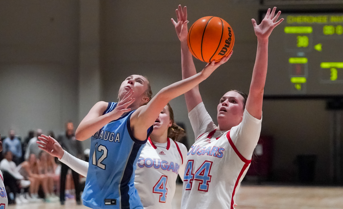 The score at the end of the first quarter, 7-5 in favor of the Pioneers, reflected both teams’ offensive frustrations. By halftime, the Cougars had clawed their way into a tenuous, 22-18 advantage, thanks in no small measure to the inside exploits of their 6 ft., 5 in., power forward/center, Blanca Thomas’ 12 first half points, as well as 6 points contributed by 6 ft. forward Gracyn Gough, including a resounding 3-pointer in the second quarter.