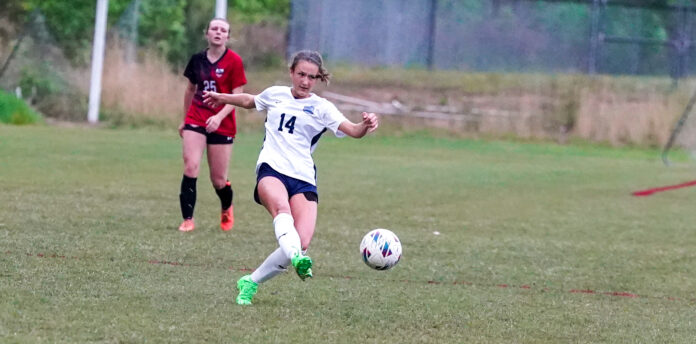 By David Rogers. BLOWING ROCK, N.C. — A well-placed corner kick from the right side by Hibriten junior midfielder Bella Hawkins midway through the second half curved into the upper left corner of Watauga’s net. It was all the Panthers needed on May 3 in the probable deciding title match of the Northwestern Conference regular season in defeating the Pioneers, 1-0.