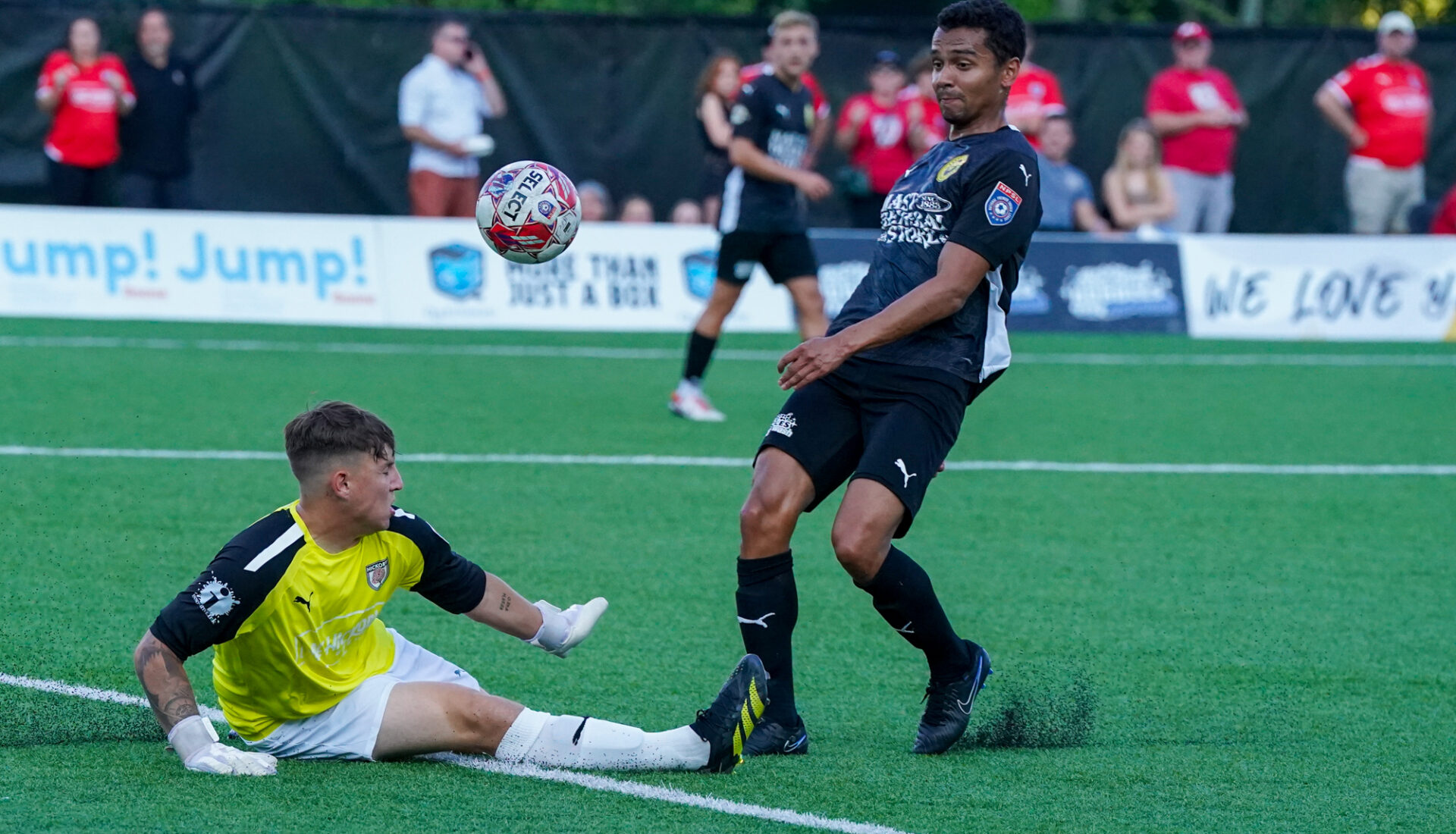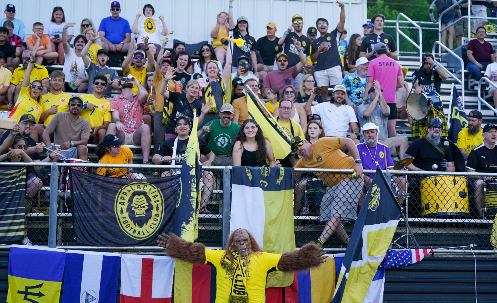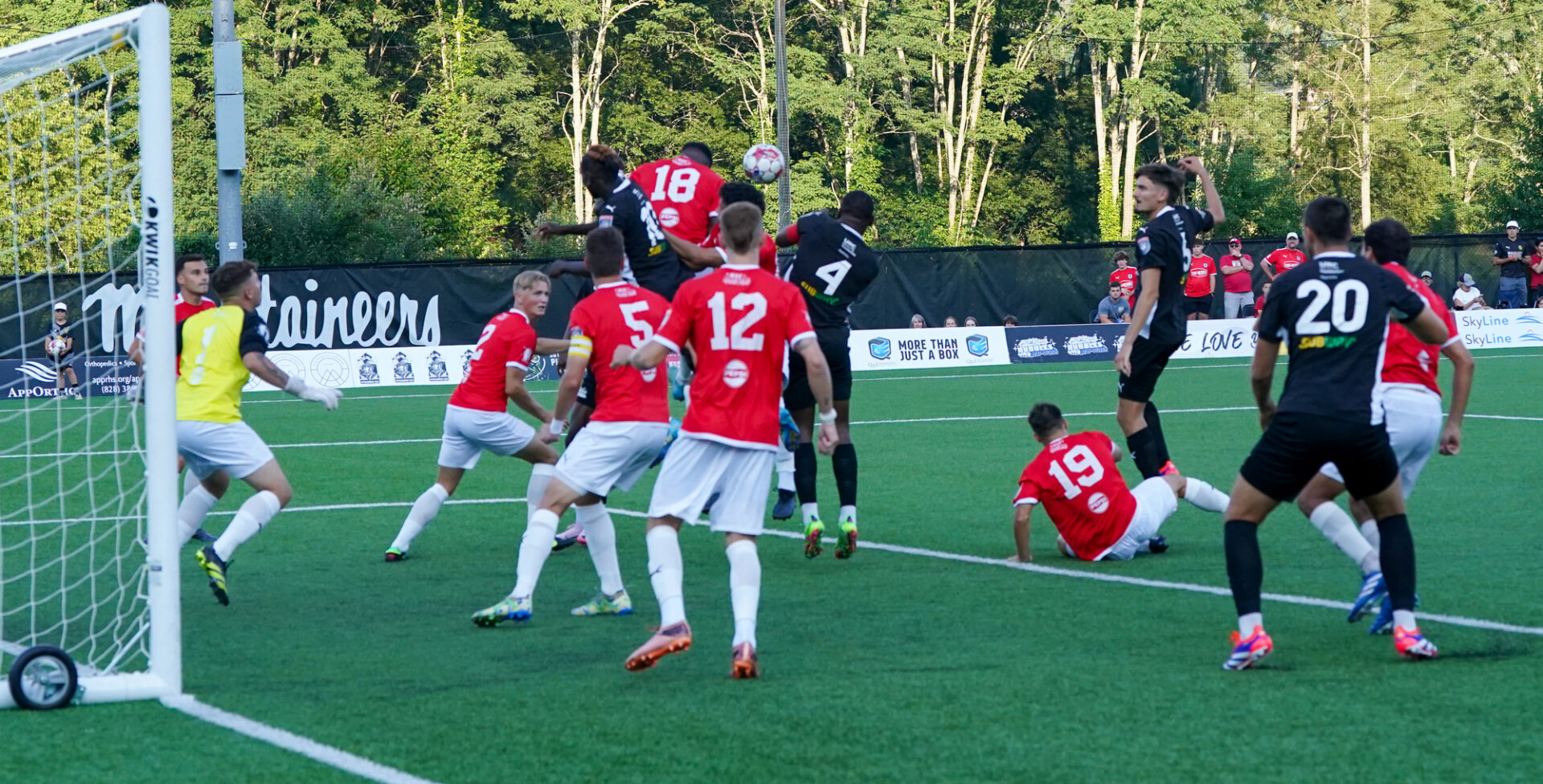 In front of the season’s largest crowd filling the grandstands and on the surrounding ridges, with drums banging and chants echoing across the playing field relentlessly, the first half was scoreless until the 39th minute when Hickory’s John Osadolor capitalized on an Appalachian defender’s miscue and zipped the ball past the Sasquatch goalkeeper to take a still nervous, 1-0 lead into the intermission.