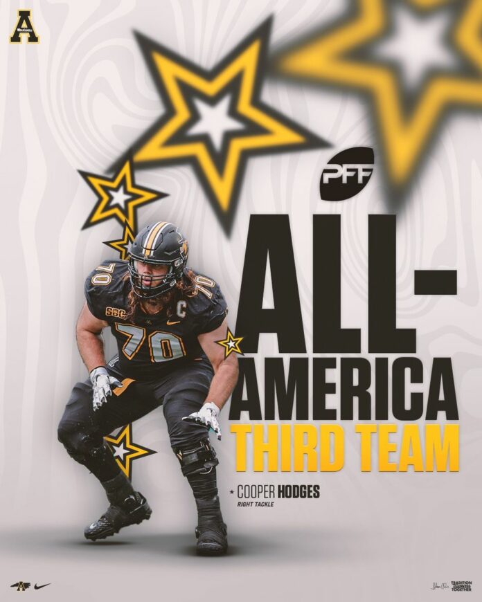 BOONE, N.C. — App State right tackle Cooper Hodges has been named a third-team All-American by PFF College.