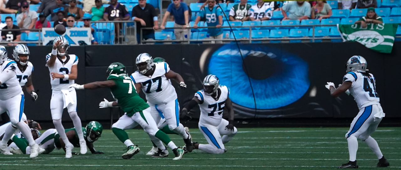 Although the Jets overwhelmed Carolina in all three phases of the game, what became most clear during this contest was the Panthers’ need to improve the offensive line play. Quarterbacks need time to find open receivers and neither Young nor relief pitcher Matt Corral — last year’s QB draft pick — got sufficient protection to orchestrate much through the air. One can always raise the question as to whether the QBs were getting the ball out of their hands fast enough, but the Jets recorded five QB sacks to rack up 35 lost Panther yards.