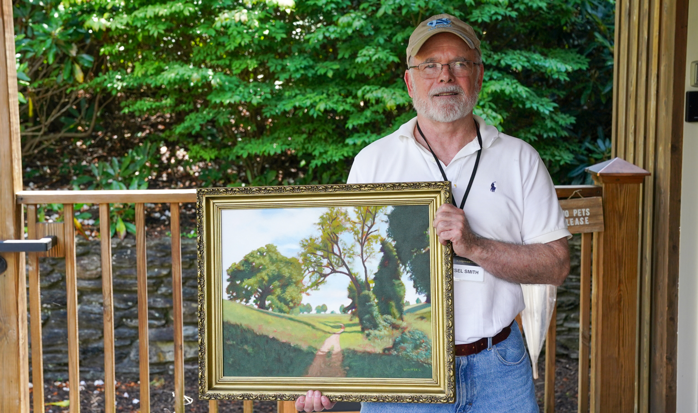Pointing to a landscape painting he had done on a Biltmore Estate trail, Smith talked about the ornateness of the frame.