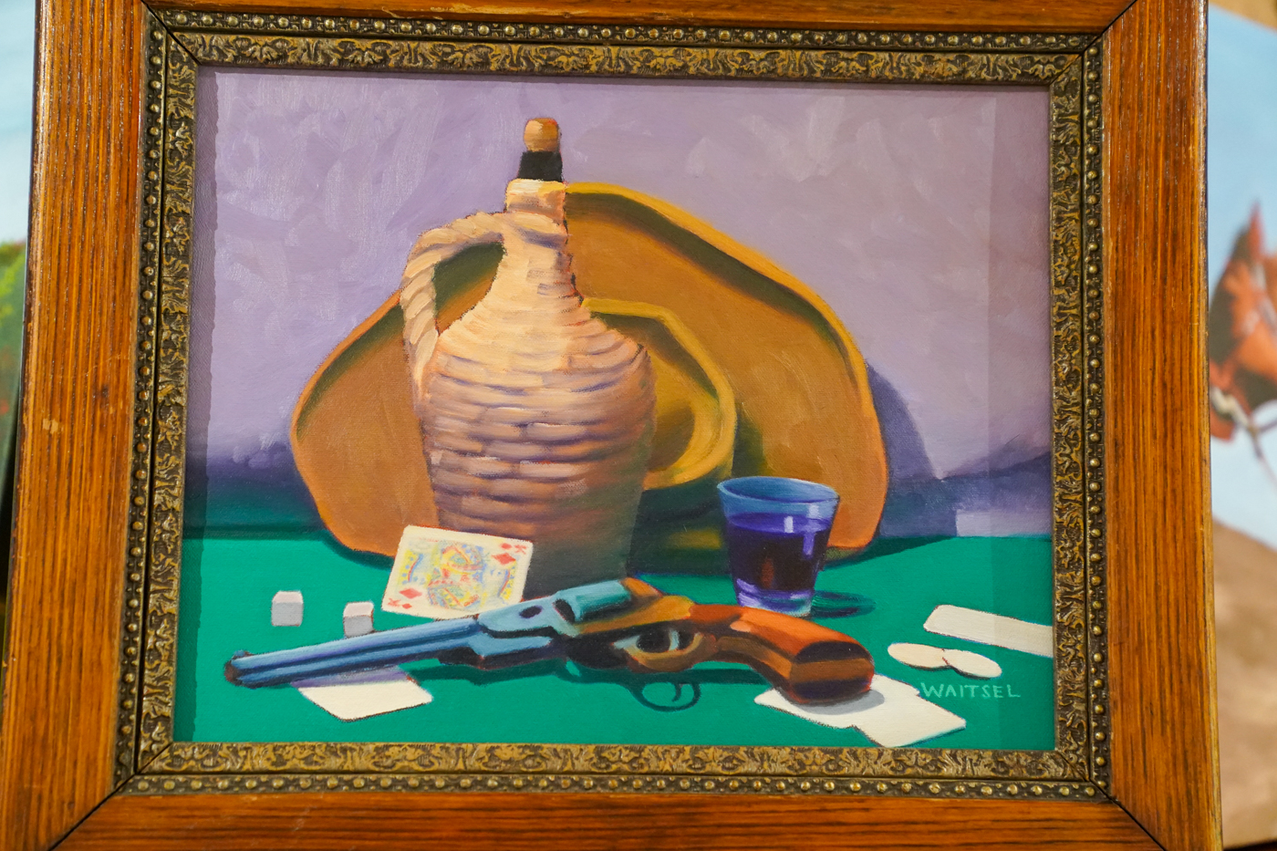 “That painting over the fireplace of a hard-riding cowboy is my favorite,” said Smith. “I love cowboys. I love horses. And I love Westerns. There are a lot of horse people around here and I want to start doing more and more horses. They are incredible animals — smart, fast, and obedient. How God put all of those qualities into one animal is amazing. And they are beautiful creatures. I love cowboys because the tend to want to mix it up! And I like that.”