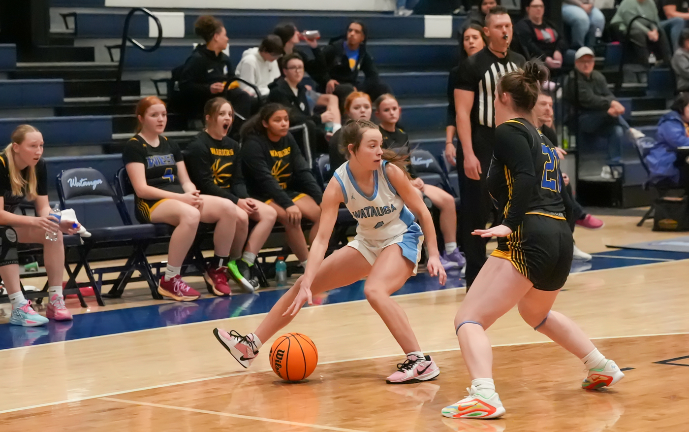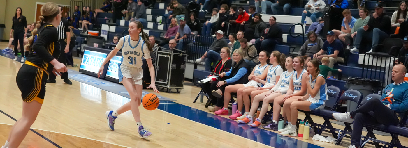 What really sets this edition of the Pioneers apart is their support for one another. The loudest cheers from the Watauga bench came a-screechin’ in celebration when second line players were on the floor and scored or outrebounded an opponent. None were louder than when junior Susanna Goff — a member of Watauga’s 6A state champion cross country team — drove the baseline for a layup or calmly lofted a 3-pointer from beyond the arc, showing her versatility.