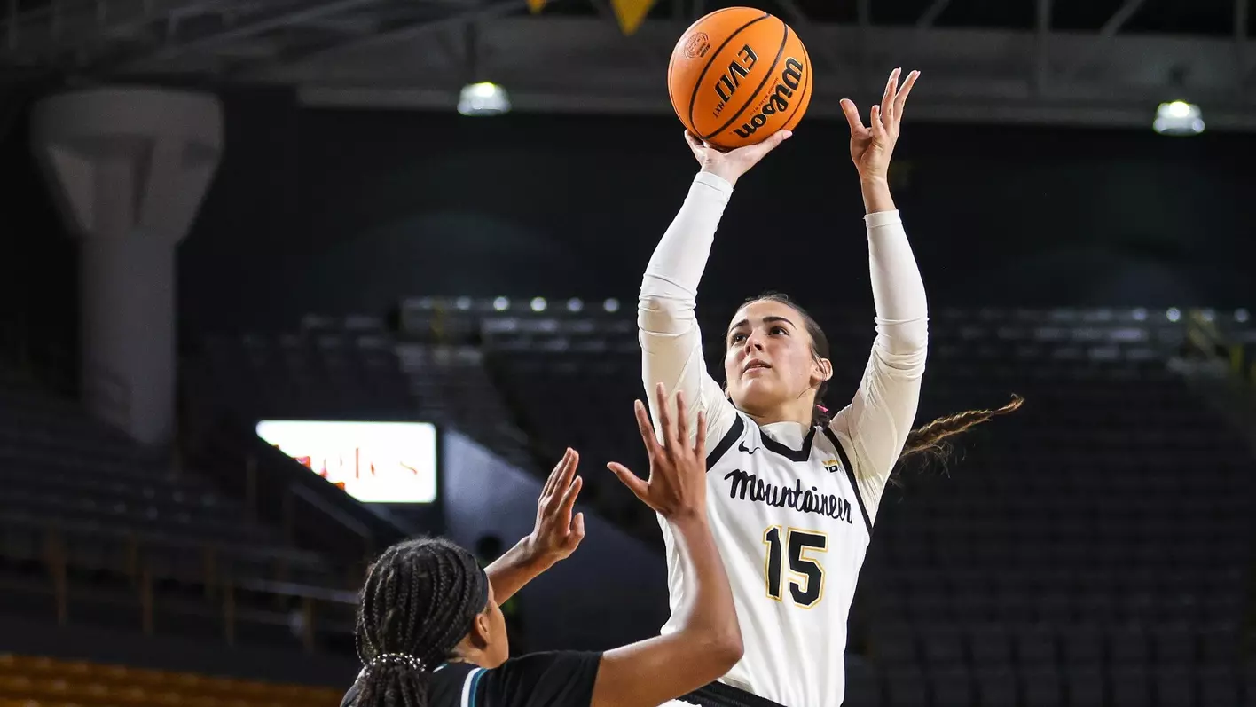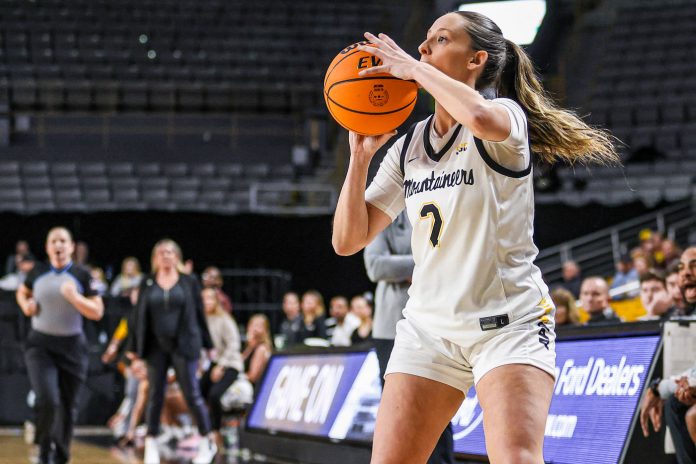 Forward Rylan Moffitt helped the Mountaineers to a 13-point lead with 5-for-5 shooting in the second quarter, finishing the game 7-of-7 and a team-high 15 points. The 6-0 junior forward is in her second year playing for the Mountaineers, after transferring from Daytona State following her freshman campaign. After starting 31 of 32 games during 2023-24, this year she is coming off the bench as one of the Mountaineers’ top reserves. She is making the most of it, second on the team in rebounding only to starter Elena Pericic and still No. 5 on the team in scoring.