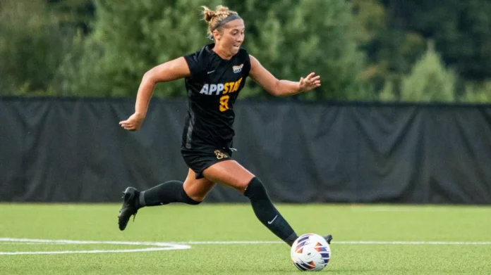 The Mountaineers (1-0-2) opened the scoring in the 33rd minute. Ellie Garrison played the ball out wide to the right wing, and after one dribble, Stephanie Barbosa fired a pass to the center of the box, where Shannon Studer was waiting, and put it away with a right-footed finish. Studer has now scored in back-to-back games, also scoring the first App State goal in a 5-0 win over Wofford on Thursday.