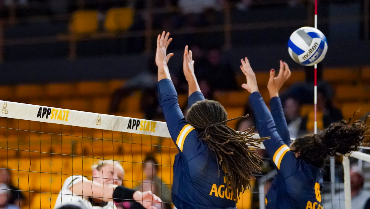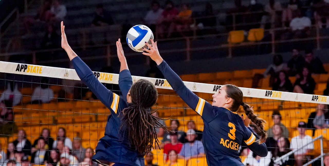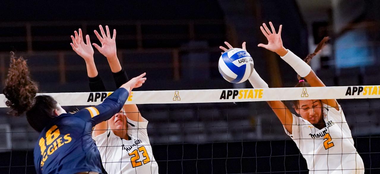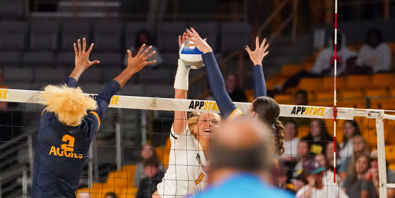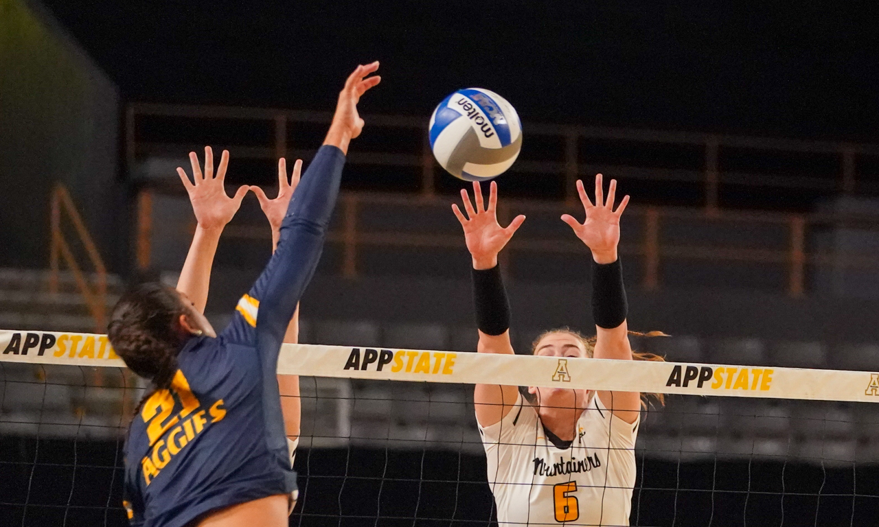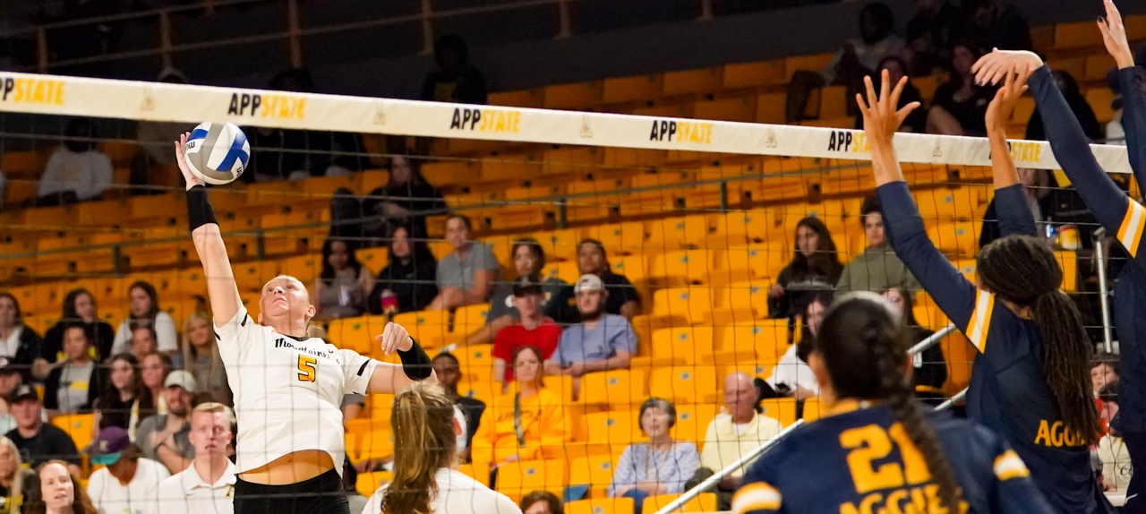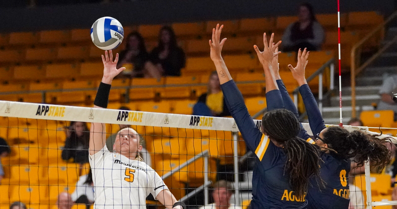 By David Rogers. BOONE, N.C. — One of the most entertaining collegiate volleyball matches of recent memory blessed the Holmes Convocation Center on Sept. 7, in the opening match of the Black and Gold Invitational. North Carolina A&T took host Appalachian State to the brink of its first loss but somehow the Mountaineers found a way to come out on top, 3-2 (21-25, 26-24, 25-14, 25-23, 16-14), and remain undefeated at 7-0 for the young 2023 season.