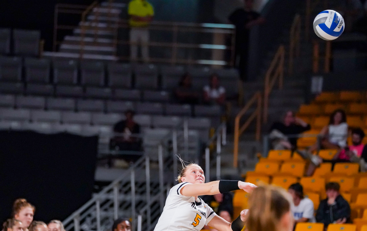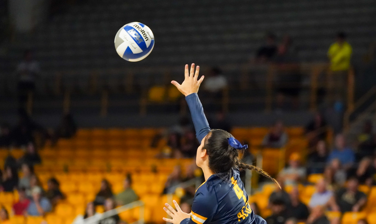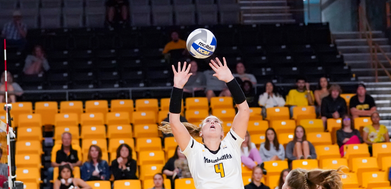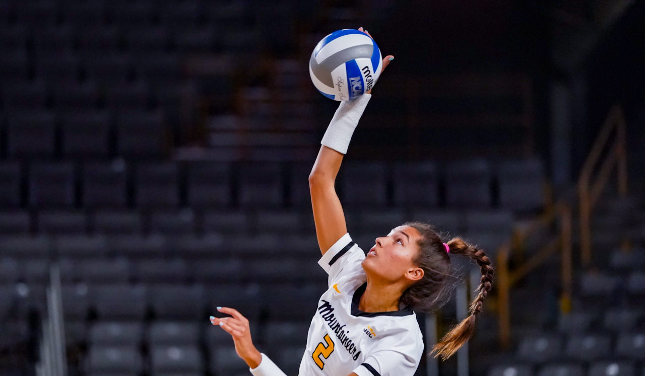 Although the Mountaineers were aggressive in their serving and had a number of service errors, they still managed to carve out a 9-5 advantage in service aces, including four by Katie Cruise.