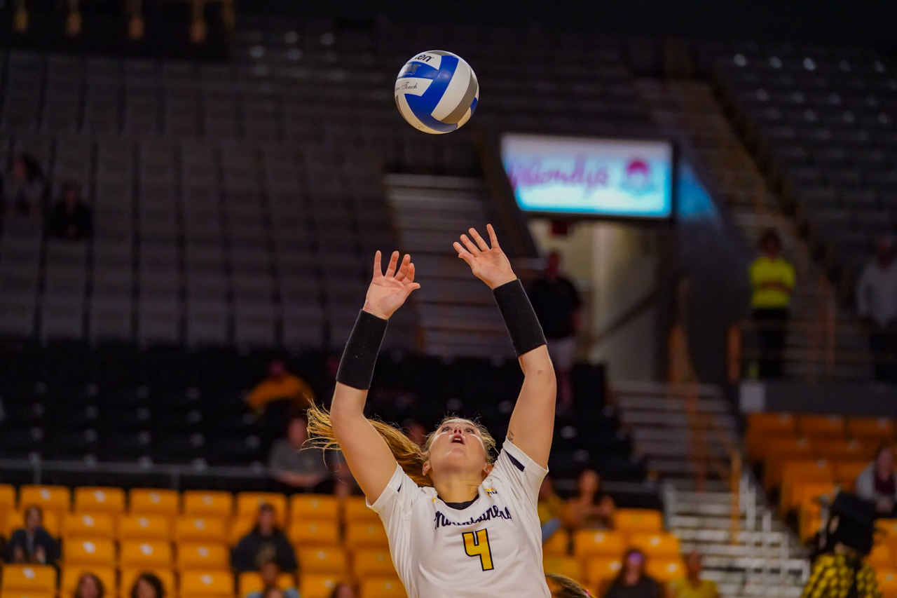 - Redshirt freshman Katie Cruise led the team with 30 assists and four aces.