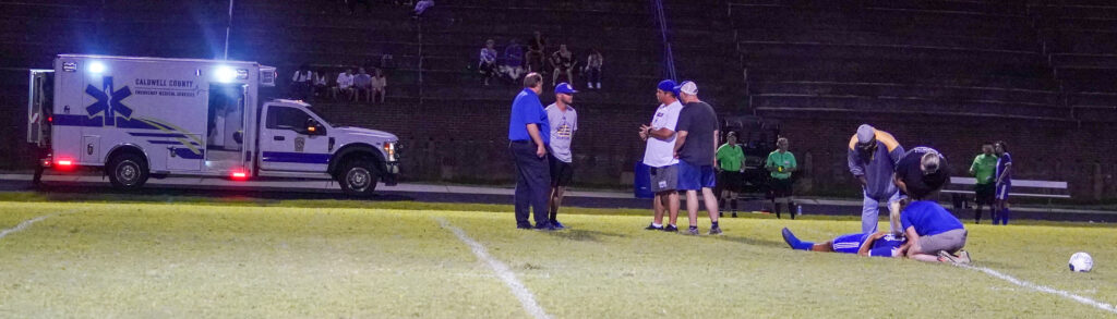 By David Rogers. LENOIR, N.C. — All but 1:20 had ticked off the game clock on Sept. 8, with West Caldwell holding a tenuous, 2-1 lead over Watauga men’s soccer. And that is when the game was called after a more than half-hour delay while school officials and EMS first responders tended to a seriously injured Warrior midfielder.