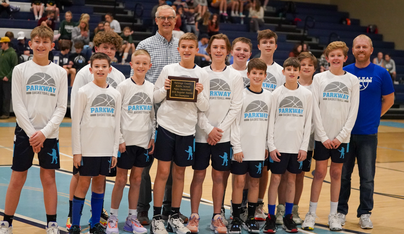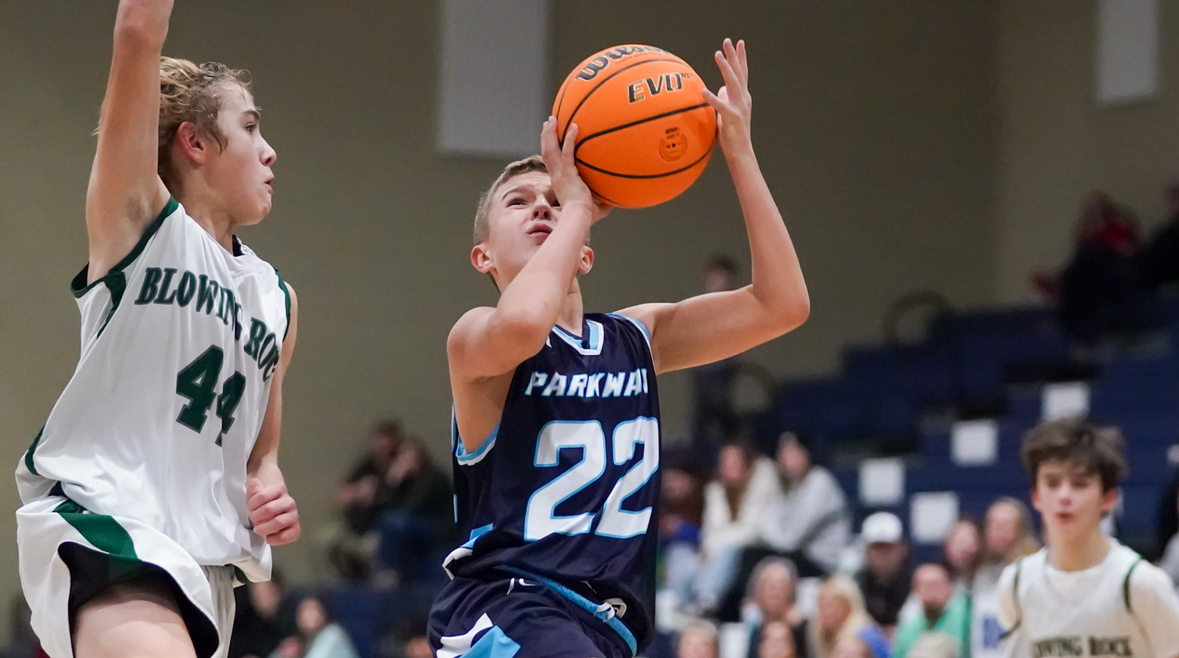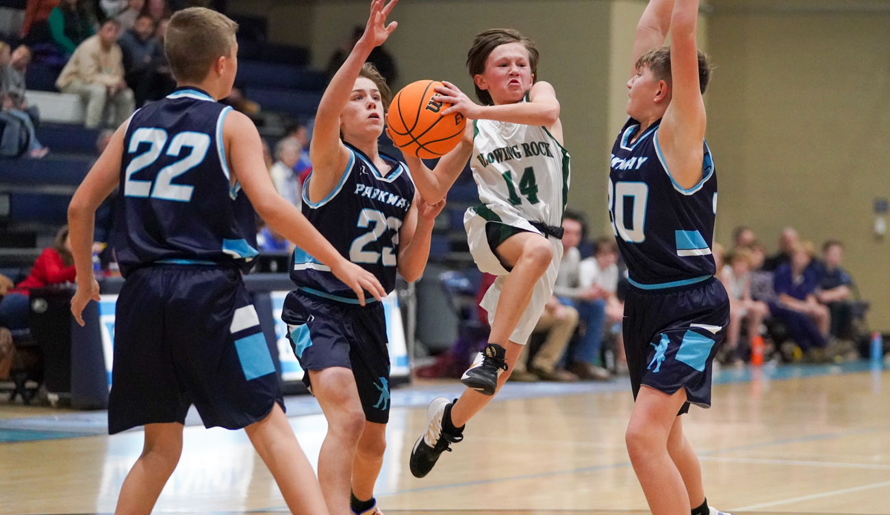 During the regular season, Parkway finished in a 3-way tie with Hardin Park and Blowing Rock for the championship. After defeating Blowing Rock in the semifinals of the county tournament, they will face Hardin Park on Dec. 15. Photographic image by David RogersChase Watts (22) goes takes advantage of an open look against Blowing Rock on Dec. 12. Photographic image by David RogersOn Dec. 12, Blowing Rock’s Fletcher Farris goes up for two in the second half against Parkway. Photographic image by David RogersCullen Sukow (42) got the first two points of Blowing Rock’s game against Parkway on Dec. 12 in the semifinals of the county middle school championship tournament. Photographic image by David RogersJohn Wilson Mills of Blowing Rock has eyes only for the basket on Dec. 12, against Parkway in the county middle school tournament semifinals. Photographic image by David RogersLouie Winger goes for two on Dec. 12 vs. Parkway. Photographic image by David RogersAlong with Hardin Park and Parkway, the Blowing Rock middle school boys basketball team finished in a 3-way tie for the regular season championship in 2022. Photographic image by David Rogers