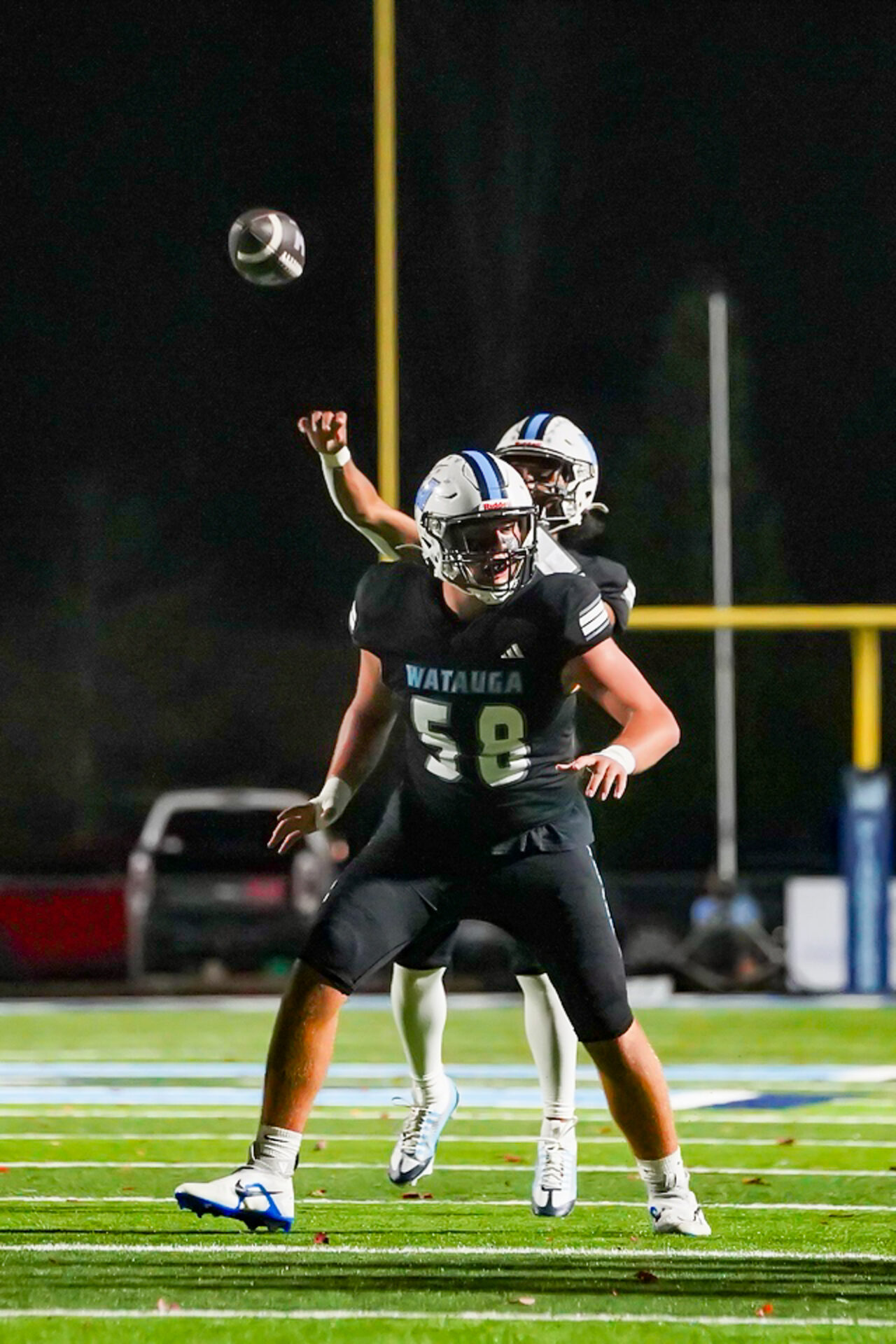 By David Rogers. BOONE, N.C. — Look closely at the golden leaf fallen to rest against the blue-painted football turf. Surely it is a sign of grand things to come for Watauga when Mother Earth forges a “W.”