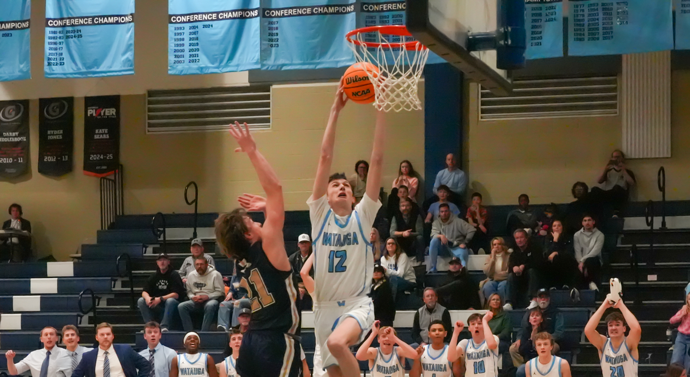 Head coach Bryson Payne’s up-tempo offense and disciplined defensive schemes were on full display against the Cougars, in front of a nearly full house in Lentz Eggers Gym. The Pioneers jumped out in front early and kept building on the lead, rarely letting the proverbial pedal off the metal. In the second half, ACHS made a run that would cut Watauga’s 20-point advantage in half, to 10, but that didn’t last long — and the lead kept expanding even when the Pioneers’ most rarely used bench players took the floor. If there was a statement moment, it might well have been when 6-4 junior forward Mason Tate finished off a fast break with a resounding dunk that left him hanging by his knuckles on the rim — as the Pioneer bench filled with the starters exploded in celebration for their young brother.