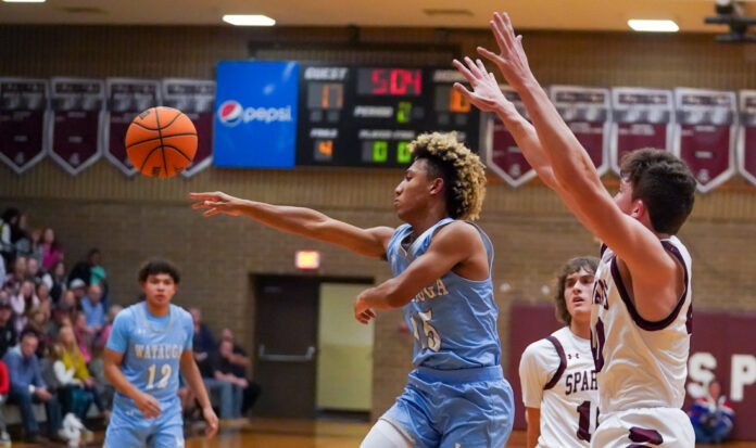 The Pioneers seemed to take control early with a 14-7 lead at the end of the first quarter. But Watauga lost the inside presence of junior forward Jackson Pryor to foul trouble early in the second period and that proved at least one of the factors in the Spartans’ scrambling back to trail by only one at intermission (23-22) and by just three at the end of the third quarter (36-33).