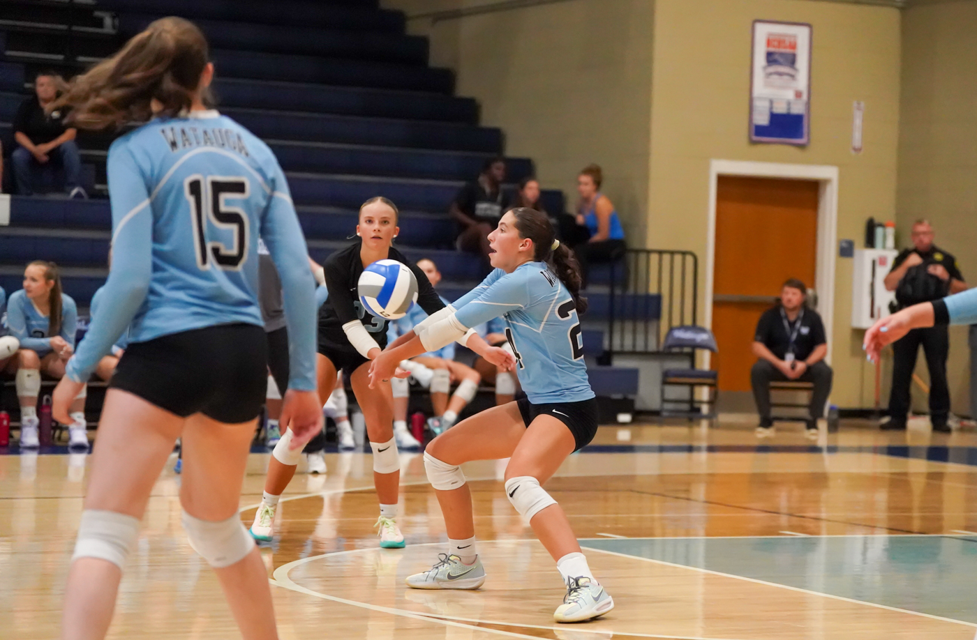 It was another match where hard-hitting senior outside hitter, Emma Pastusic, was again featured in both the front row as well as at the service line. The 2-sport athlete has developed significant arm and upper body strength while training for volleyball as well as for discus and shot put in track and field. And yet, her explosiveness — elevation off the floor — may be one of the defining skillsets to mark the Watauga season. Her strong connection with setter Lainey Gragg was obvious, with Gragg racking up 35 assists, about half leading to one of Pastusic’s 17 kills.